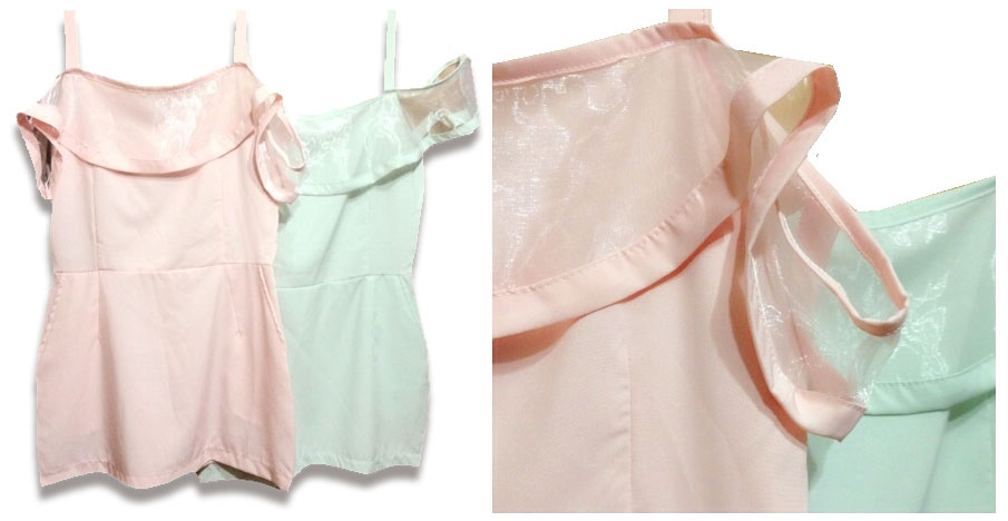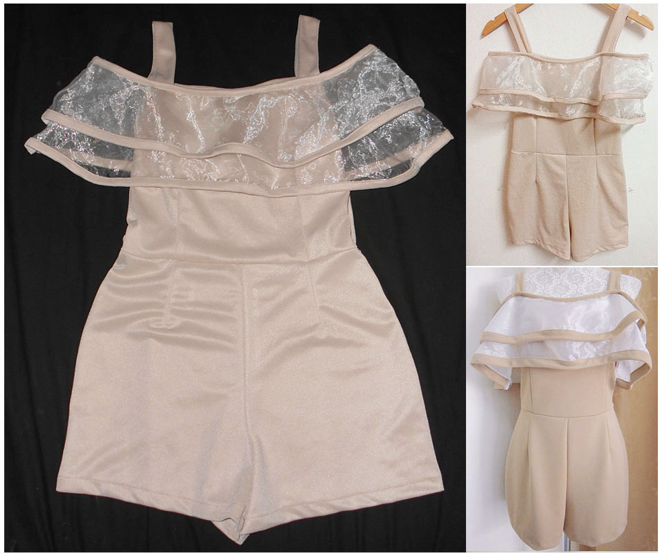 new ชุด playsuit เปิดไหล่สีนู๊ด ระบายผ้าแก้ว ผ้ายืดหนา ทรงสวยมาก ผ้ายืดได้เยอะ อก 32-36 เอว 26-30 สะโพก 34-38 ยาว 30 นิ้ว