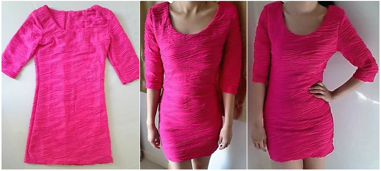 เดรสสีชมพู shocking pink ทรงเข้ารูป ผ้ายืดหนายืดได้เยอะ อก 34 เอว 26-28 สะโพก 36 ยาว 32 นิ้ว