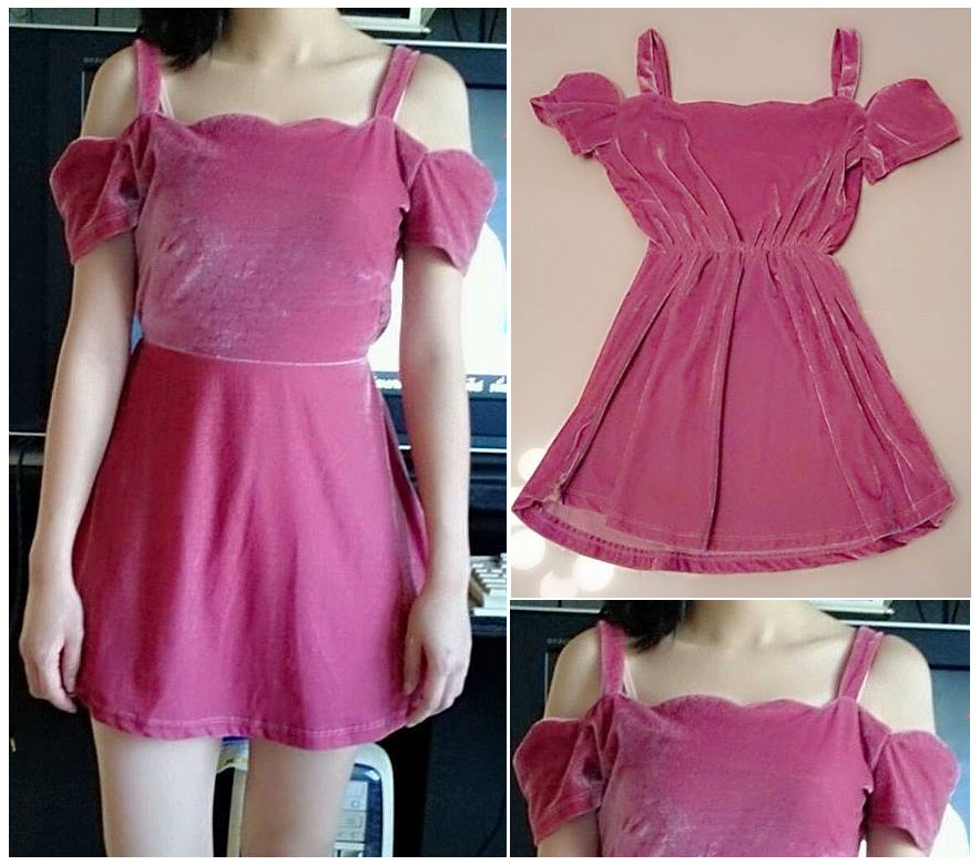 เดรสเปิดไหล่ ผ้ากำมะหยี่ ตัวนี้น่ารักมากๆ อก 34 เอว 26-28 สะโพกฟรี ยาว 30 นิ้ว