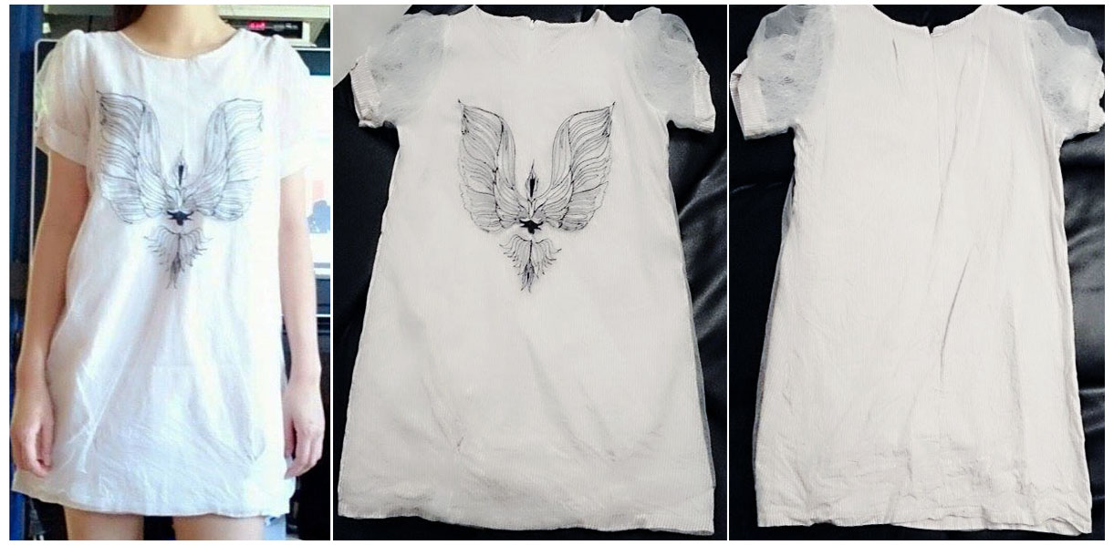 อก 32-33 เอว 26-28 สะโพกฟรี ความยาววัดจากบ่า 33 นิ้ว (วัดจากหน้าอก-ชายกระโปรง 28 นิ้ว)