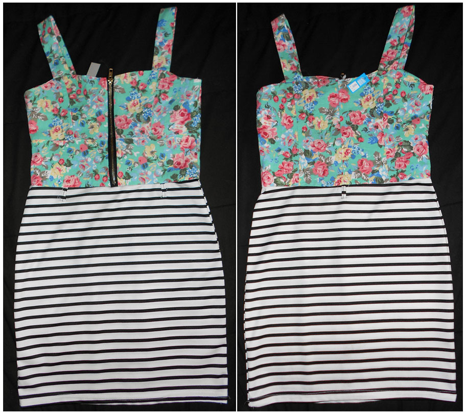new เดรสผ้ายืดทรงบอดี้คอน ช่วงกระโปรงเป็นผ้ายืดลายขวาง ผ้าหนายืดได้เยอะ อก 32-34 เอว 26-28 สะโพก 36 ยาว 31 นิ้ว