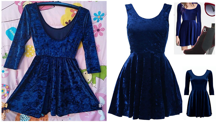 new cop topshop เดรสกำมะหยี่เว้าหลัง สีน้ำเงิน (ซักแล้วไม่เคยใส่) ผ้าทิ้งตัวสวยมาก อก 34-35 เอว 26-30 สะโพกฟรี ยาว 30 นิ้ว
