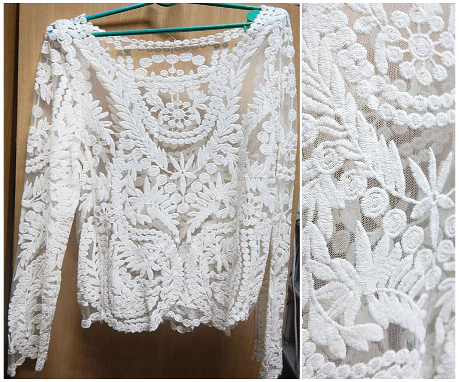 เสื้อลูกไม้ปักลายใบไม้ use 1 time ค่ะ สภาพใหม่ อก 38 ยาว 22 นิ้ว