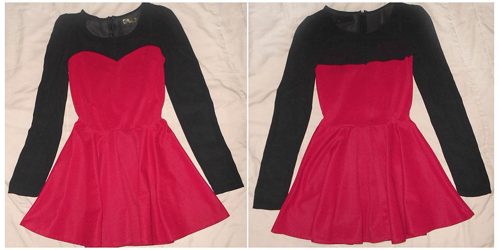เดรสสีแดง ไหล่พองเล้กน้อย ช่วงอกและเป็นซีทรูสีดำ ผ้าหนามีน้ำหนักทิ้งตัวสวยอก 34 เอว 26-30 สะโพกฟรี ยาว 31 นิ้ว