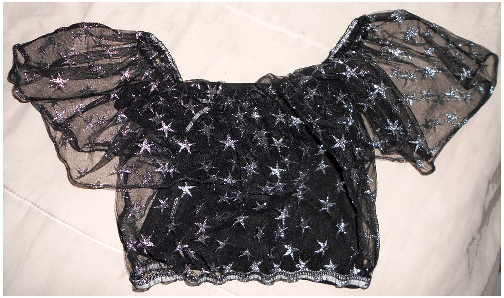 เสื้อซีทรูเปิดไหล่ จั๊มเอว cop la boutique ปักดิ้นสีเงินลายดาววิ้งๆ ของใหม่ อก 38 ความยาวตอนใส่วัดจากบ่า 14 นิ้ว (แถมเกาะอกสีดำ)