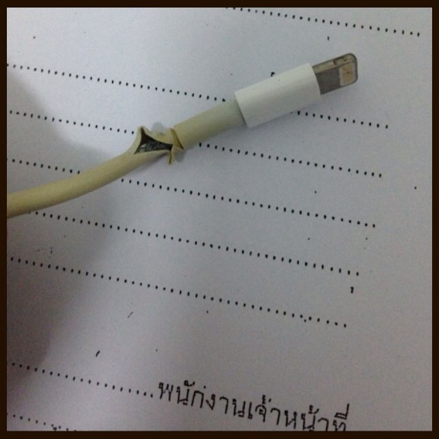 ขอสอบถามหน่อยครับ พอดีสายชาร์จไอโฟน5 มันย่นแล้วก็มีรอยแตกตรงรอยย่น