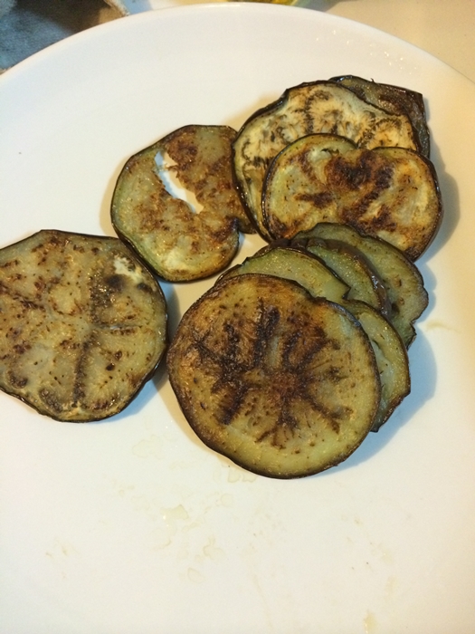 มะเขือม่วงแนะนำให้ใช้วิธีย่างไฟ สำหรับผมเอาไปแนบในกระทะแทน