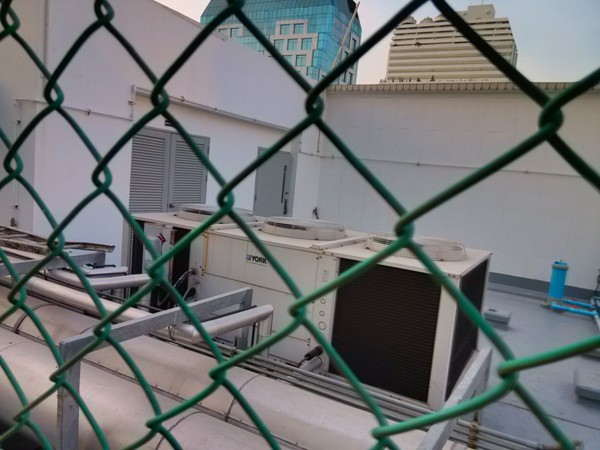 บริษัทผมได้มีการจัดสนามกีฬาไว้บนชั้นดาดฟ้าของอาคาร ซึ่งมีพวกเครื่องจักรลักษณะเหมือนคอมเพรสเซอร์ทั้งขนาดเล็กและขนาดใหญ่อยู่บนดาดฟ้าเป็นจำนวนมาก (ไม่รู้เขาเรียกว่าอะไรครับ) ตามรูปด้านล่าง