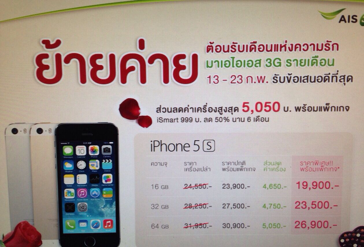 โปรซื้อเครื่องลด 5,050 ฿ i5s AIS 3G ย้ายค่าย