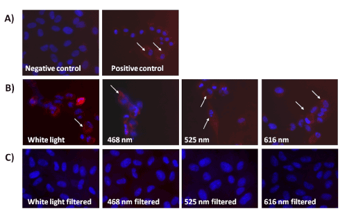 ได้ทำการทดลองโดยใช้ LED สีแดง,เหลือง, น้ำเงิน และ ขาว ขนาดความเข้ม 5 mW/cm2