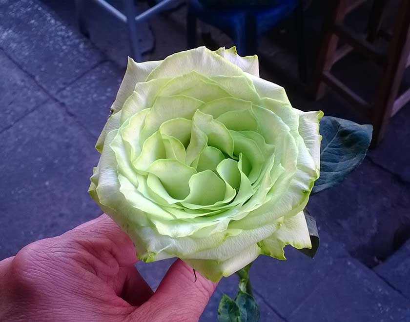 ลองซื้อกุหลาบขาวมาลองทำครับ ผลที่ได้ออกมาเป็นสีเขียวอ่อนแล้ว 1 สีครับ เดี่ยวลองทำอีกทีหลังวาเลนไทน์ เพราะดอกกุหลาบแพงเกินครับ อิอิ
