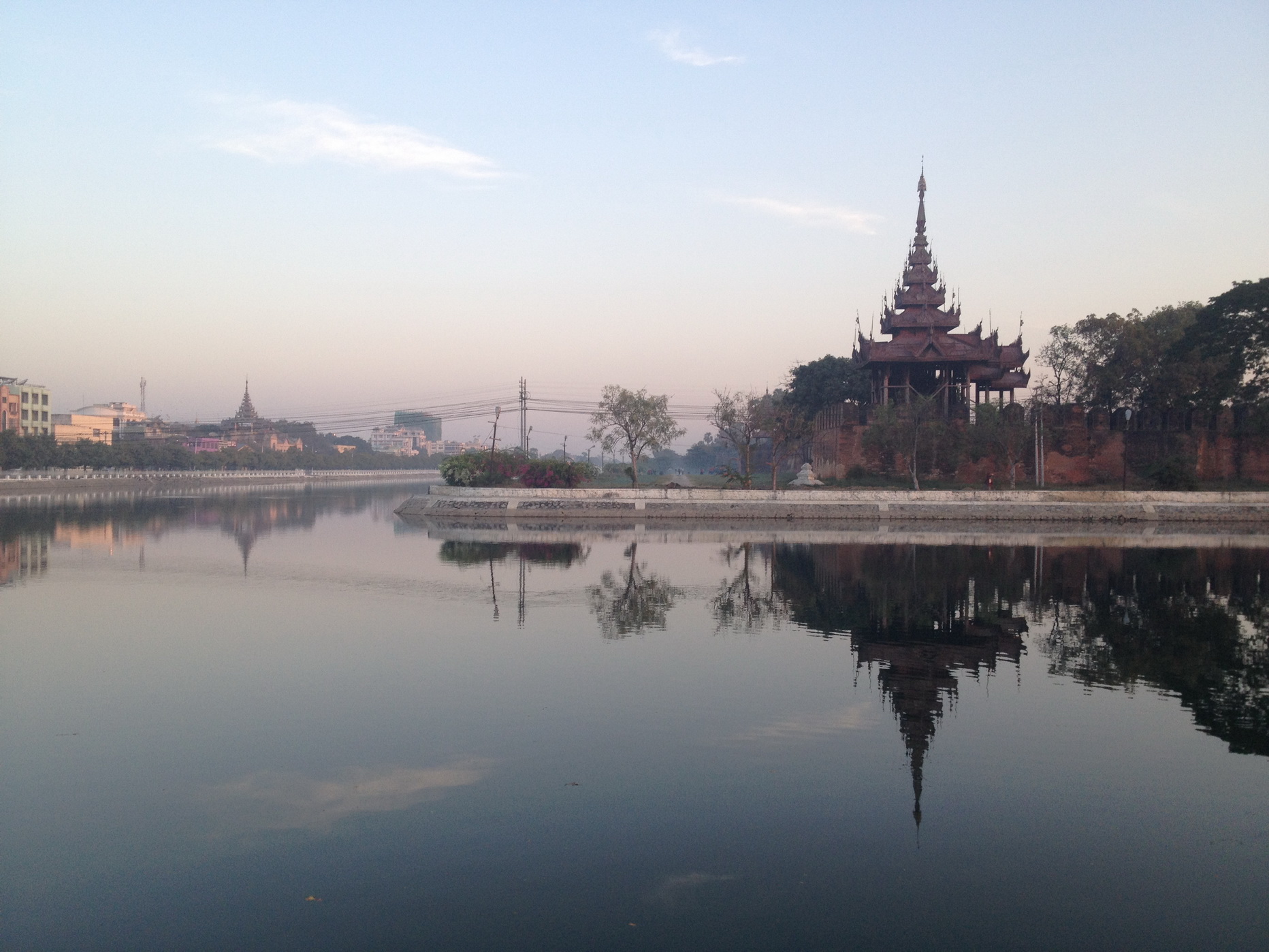 โดยรถมาส่งเราถึงหน้าสถานีรถไฟเมือง Mandalay เลย(ซึ่งหากใครจะลงจุดไหนที่รถผ่านใน มัณฑเลย์ ก็สามารถบอกเค้าได้) พอลงรถก็มีหนุ่มมอไซค์และแท็กซี่มากมายมาเสนอบริการ แต่เราขอฝ่าวงล้อมนั้นไปนั่งตั้งสติที่ในสถานีรถไฟเพื่อหาพิกัดจุดตัวเองจากแผนที่เยินๆอันเดียวกับแผนที่ย่างกุ้งที่ได้จากสนามบินวานนี้ อีกอย่างก็ยังไม่ได้จอง รร มา เลยไม่รู้จะบอกว่าให้ไปส่งที่ไหน 55 โชคร้ายที่ก่อนมายุ่งกับการเคลียร์งานมาก จนลืมจดที่อยู่ รร ที่ดูๆไว้มาเลย แต่ก็โชคดีที่เคยดูมาคร่าวๆว่า รร ยอดฮิตส่วนใหญ่อยู่ใกล้ๆหัวมุมราชวังมัณฑะเลย์ฟากหอนาฬิกา เลยเดินมาเรื่อยๆกะว่าถ้าเจอ ไซการ์ (สามล้อ) ก็จะเรียก เพราะอยากนั่งสูดอากาศยามเช้าแบบเอื่อยๆ แต่ตอนนั้นไม่ค่อยมีเลย แถมที่มีขี่ผ่านมาก็เป็นคุณลุงที่พูดอังกฤษไม่ได้เสียนี่ แต่ก็ไม่เป็นไรการเดินไม่ใช่ปัญหาสำหรับดิชั้นอยู่แล้ว..