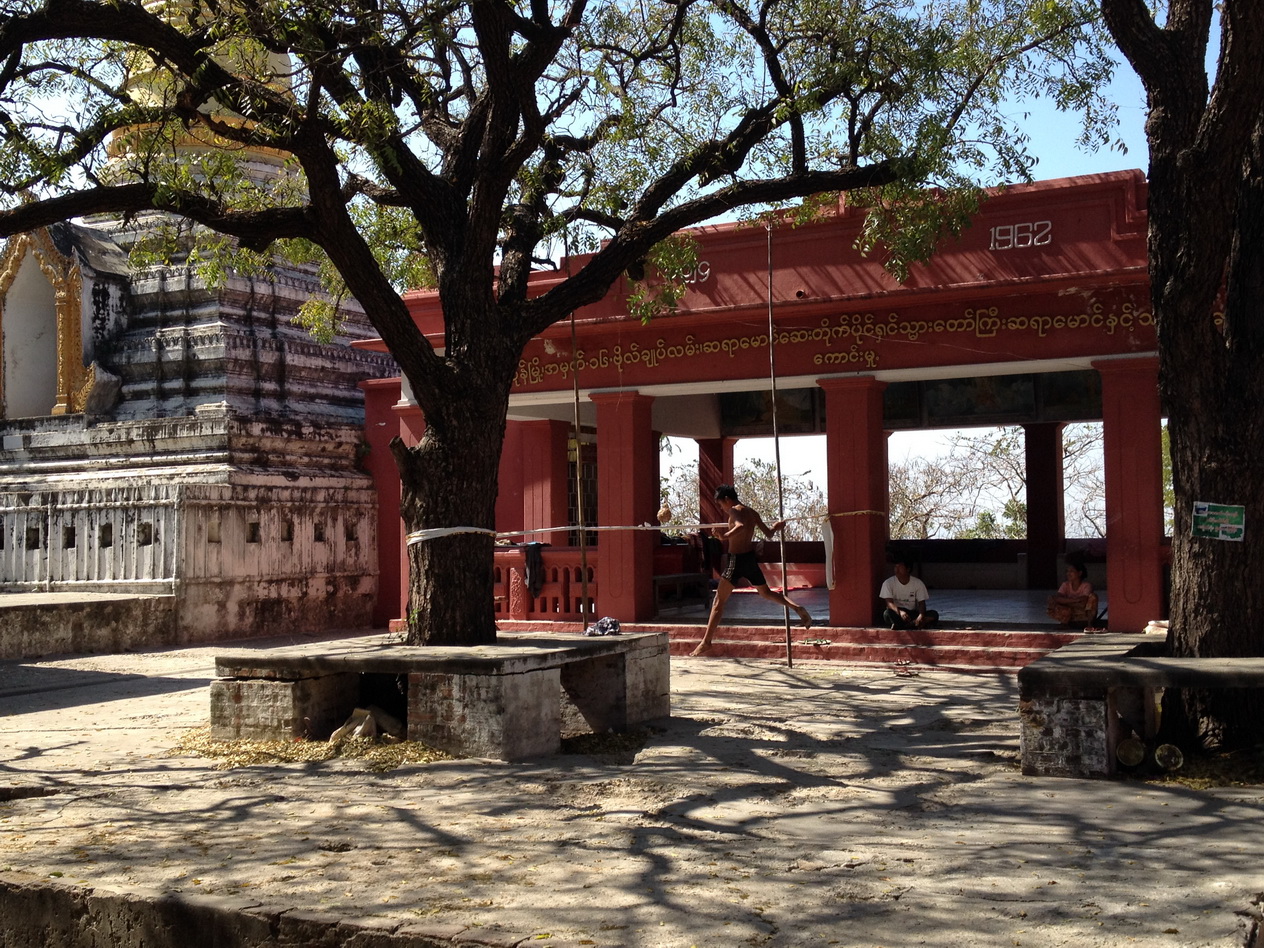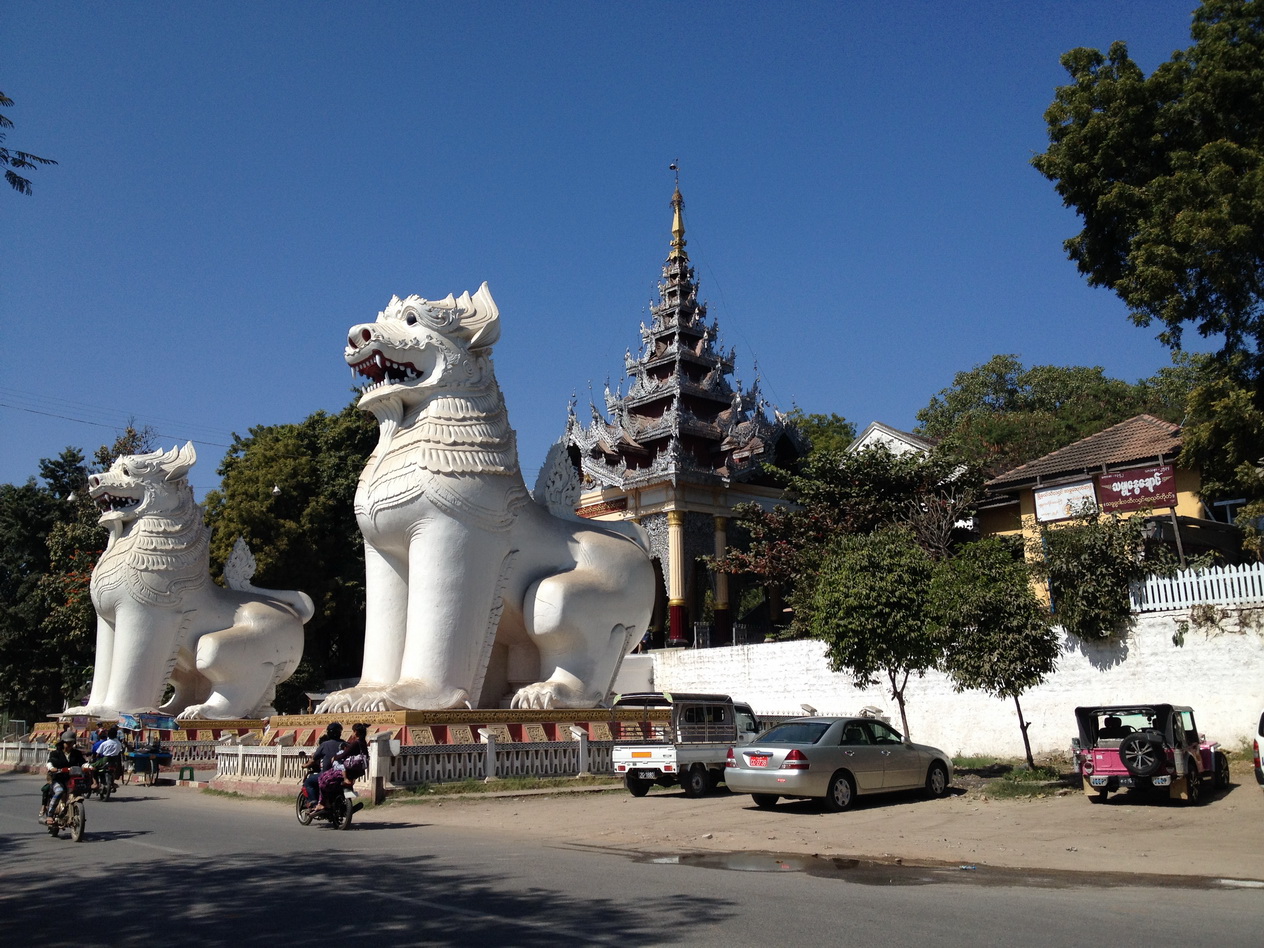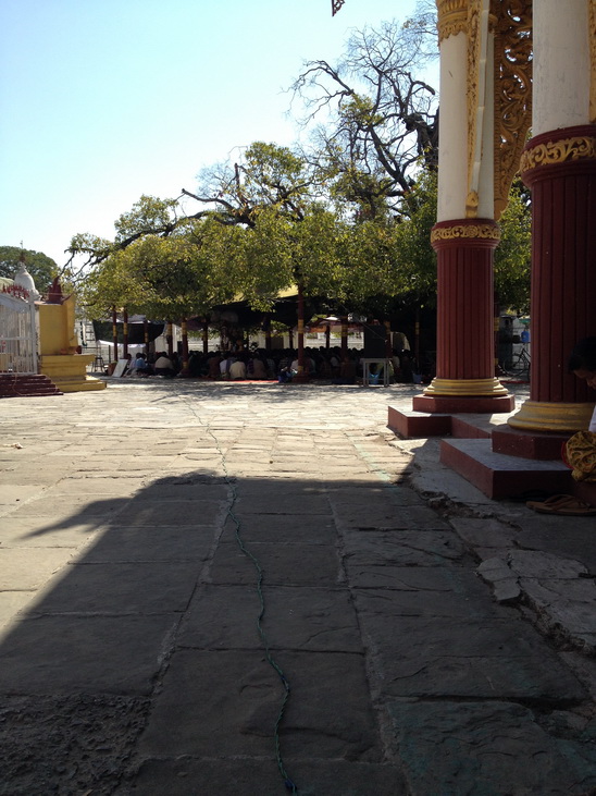นั่งๆรถไปจนเกือบถึงทุกคนที่นั่งมาก็ลงกันหมดแล้ว พวกหนุ่มๆสองแถวก็เริ่มมาห้อมล้อม ..ตอนแรกเราก็คิด เฮ้ยยย เอาอีกแร้วววหราาา นี่จะโดน harass กลางวันแสกๆ เลยรึ..ไม่น่าาาา ขออย่าให้เป็นอย่างที่คิดเล้ยย.. แต่กลับเป็นว่าได้เพื่อนใหม่ อิอิ หนุ่มๆเค้าแค่ชวนคุยนู่นนี่นั่นอย่างเป็นมิตร (ซึ่งผิดกลับหน้าตาท่าทาง อิอิ - คงมะเคยได้พบเจอเทยหรือไม่ก็ไม่ค่อยได้เจอคนสวยโลกตะลึงอย่างนี้ 555เลยมาทำความรู้จักกันยกใหญ่) แถมยังช่วยแนะนำวัดต่างๆ ระแวกมัณฑะเลย์ฮิลล์อีก ก็เลยคิดว่านี่เราคิดไม่ผิดจริงๆ ที่ไว้ใจหนุ่มสองแถว เพราะเราสามารถเดินเที่ยวได้หลายที่จากมัณฑะเลย์ฮิลล์เลย... พอสุดสายรถที่เชิงเขามัณฑะเลย์หนุ่มๆก็ชี้ทางขึ้นเขาให้เราดู แต่พอจะเดินไปก็เหลือบไปเห็นวัดนึงคนเยอะดี เลยแวะเข้าสำรวจซะหน่อย ถามคนแถวนั้นได้ความว่า วัดนี้ชื่อ วัดจ๊อกตอว์จี ( Kyauk Taw Gyee )
