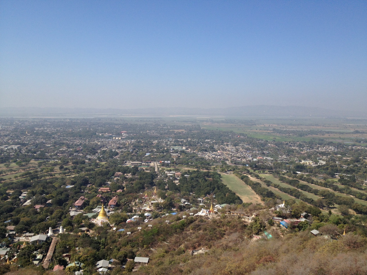 บนยอดเขามัณฑะเลย์นี้เราสามารถมองเห็นวิวทิวทัศน์ของเมืองมัณฑะเลย์ได้รอบๆ ถ้ามองดีๆ ก็จะมองเห็นสายน้ำเอยาวดี หรืออิระวดีเป็นริ้วๆอยู่ไกลๆ มองถัดออกไปอีกก็จะเห็นเทือกเขาฟากเมืองสะกาย เป็นภาพวิวทิวทัศน์และปราการธรรมชาติของเมืองมัณฑะเลย์ที่ยิ่งใหญ่และสวยงามมากจริงๆ