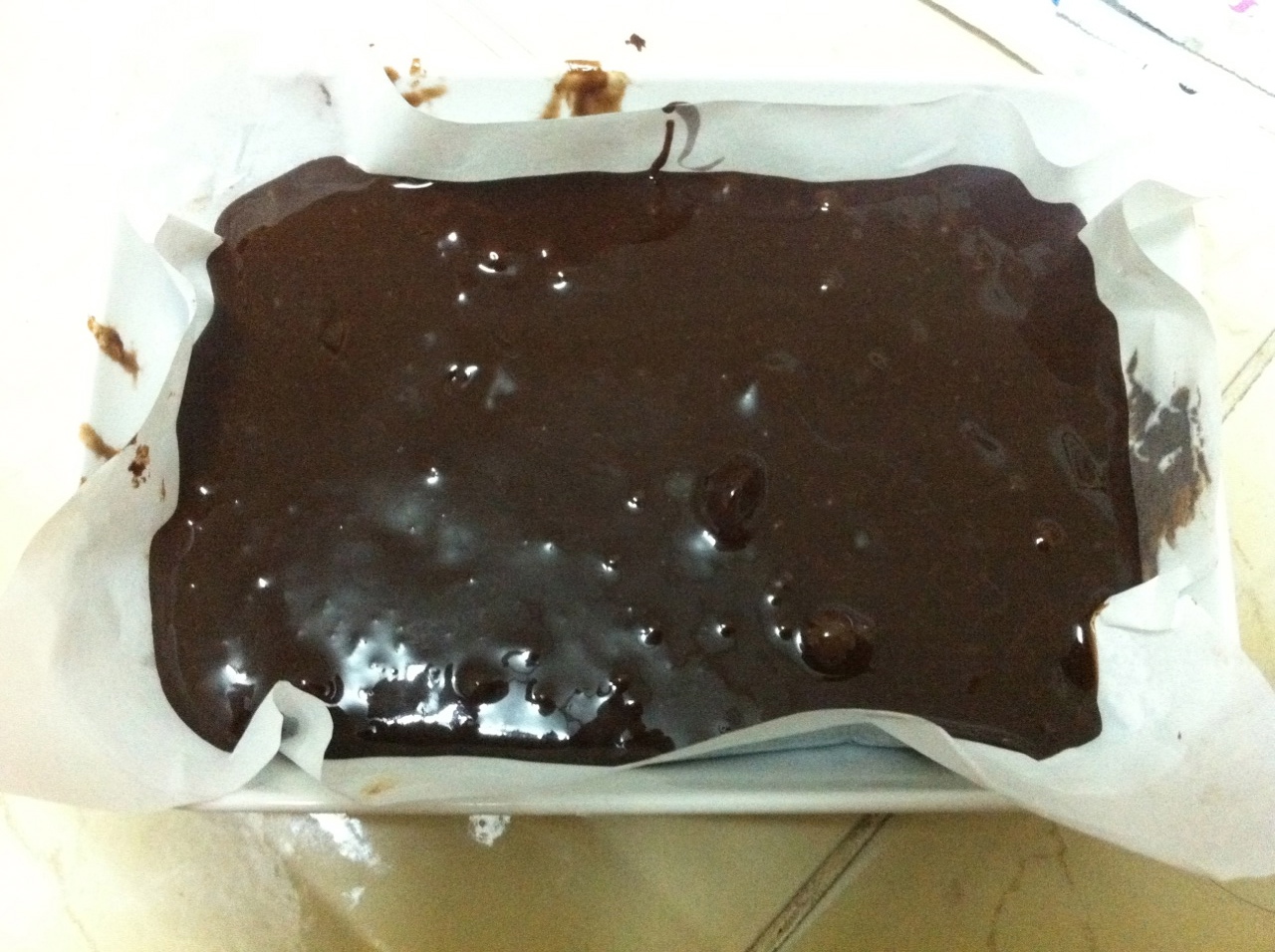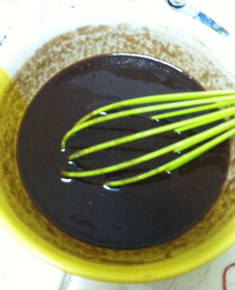 1. เอาเนยที่ปล่อยให้เย็นในอุณหภูมิห้องไปละลายในไมโครเวฟก่อนประมาณ 10 วินาที ผสมกับช็อกโกแลตหั่น 1/2 ถ้วย (ส่วนนี้เพิ่มเอง) รูปนี้ลืมถ่าย กลัวเนยมันแยกชั้นก่อน 5555