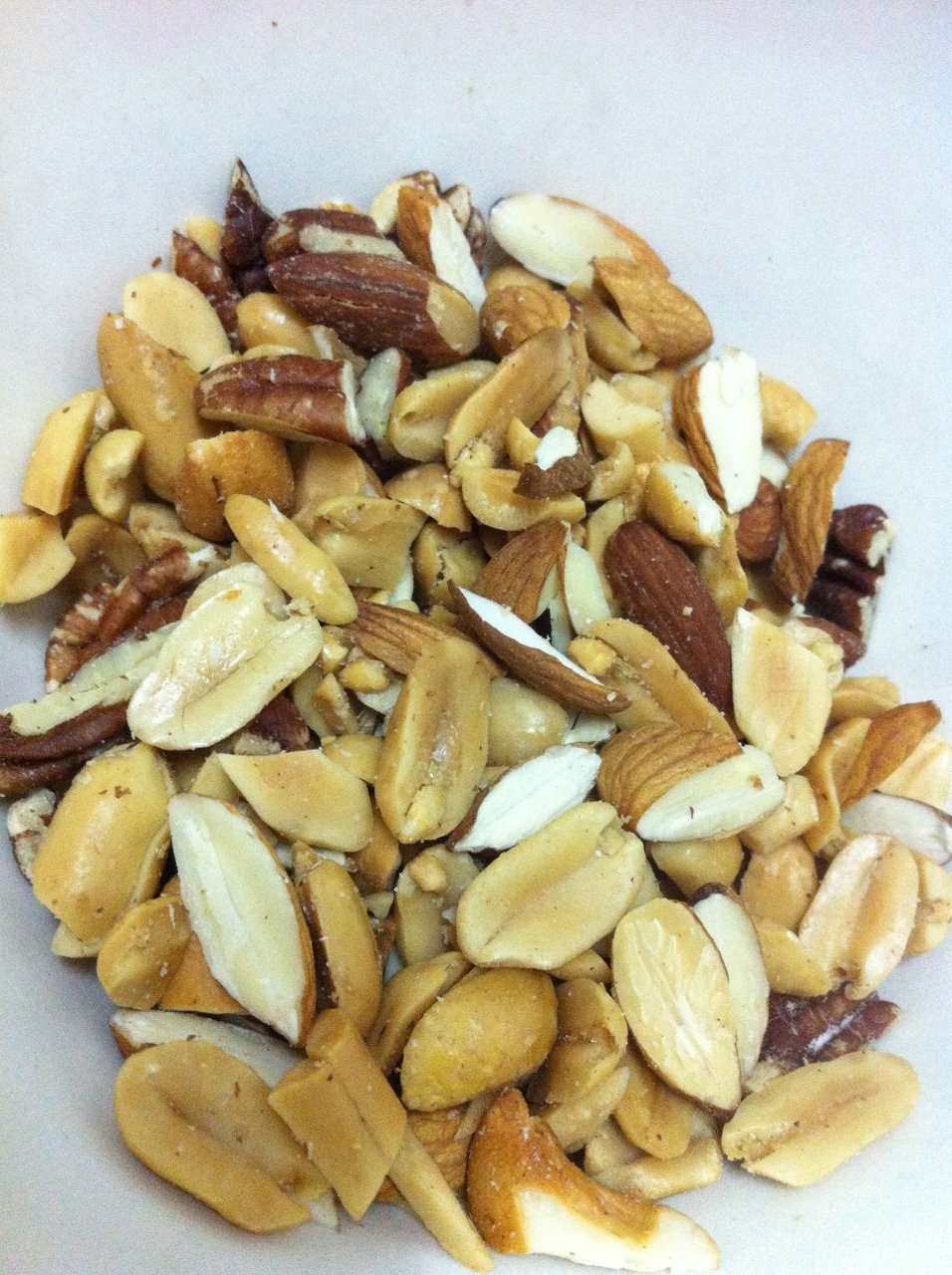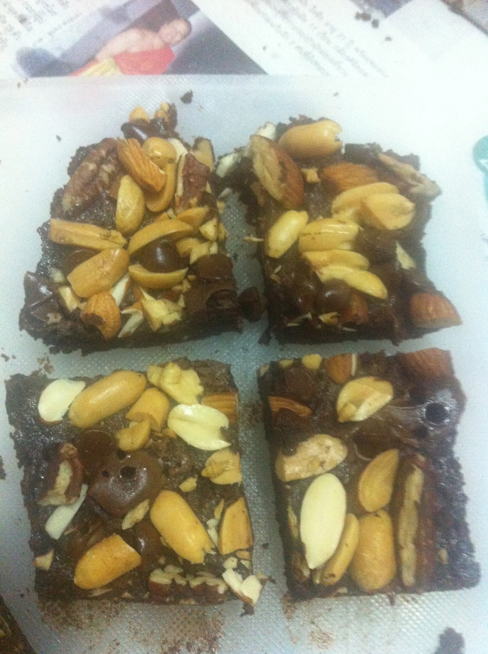 6. ใส่ส่วนผสมลงในภาชนะที่เข้าไมโครเวฟได้ เวฟก่อนประมาณ 1:30 นาที แล้วเอาออกมาโรยถั่ว ช็อกโกแลต หรือ อะไรก็ได้ตามต้องการ (ตอนนี้ยังไม่ค่อยร้อนแต่แป้งเริ่มเซ็ตตัว ก็เอามือกด ๆ ถั่วลงไปหน่อยจะได้ไม่หลุดออกจากหน้า) แล้วก็เวฟต่อประมาณ 1-2 นาที แล้วก็เอาไม้จิ้มฟัน จิ้ม ๆ ดู ถ้าไม่มีเนื้อก็แสดงว่าสุกแล้ว