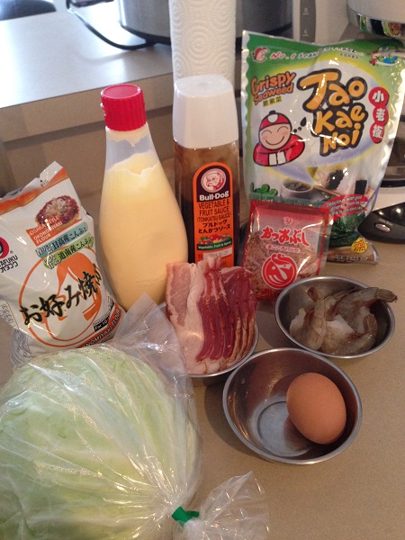 ตัวซอสโอโคโนมิยากิมีแบบสำเร็จรูปขาย หรือจะทำเองก็ได้นะคะ แต่ทีนี้มีซอสทงคัตสึเหลืออยู่เลยใช้ซอสนี้แทน แป้งนี่ก็จะใช้แป้งเค้กแทนก็ได้ค่ะ