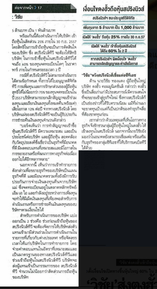 4.... วิชัย(ผู้ถือหุ้นใหญ่กลุ่มโรงพยาบาลและ CTH ) ส่งตงฮั้ว ซื้อหุ้น Spring News ควบใหญ่ 60% ใน2ปี เหตุ(กลุ่มทุนเดิม หาเงินไม่เสี่ยงจ่ายอนุญาติรายเดียว)