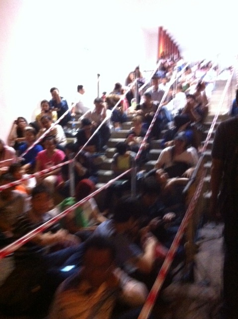 เรานั่งเรียงแถวกันบนพื้นบันไดด้านนอก จนใกล้ๆ ตี5 ค่ะ ยังดีที่ไม่มียุงและอากาศไม่ร้อนค่ะ