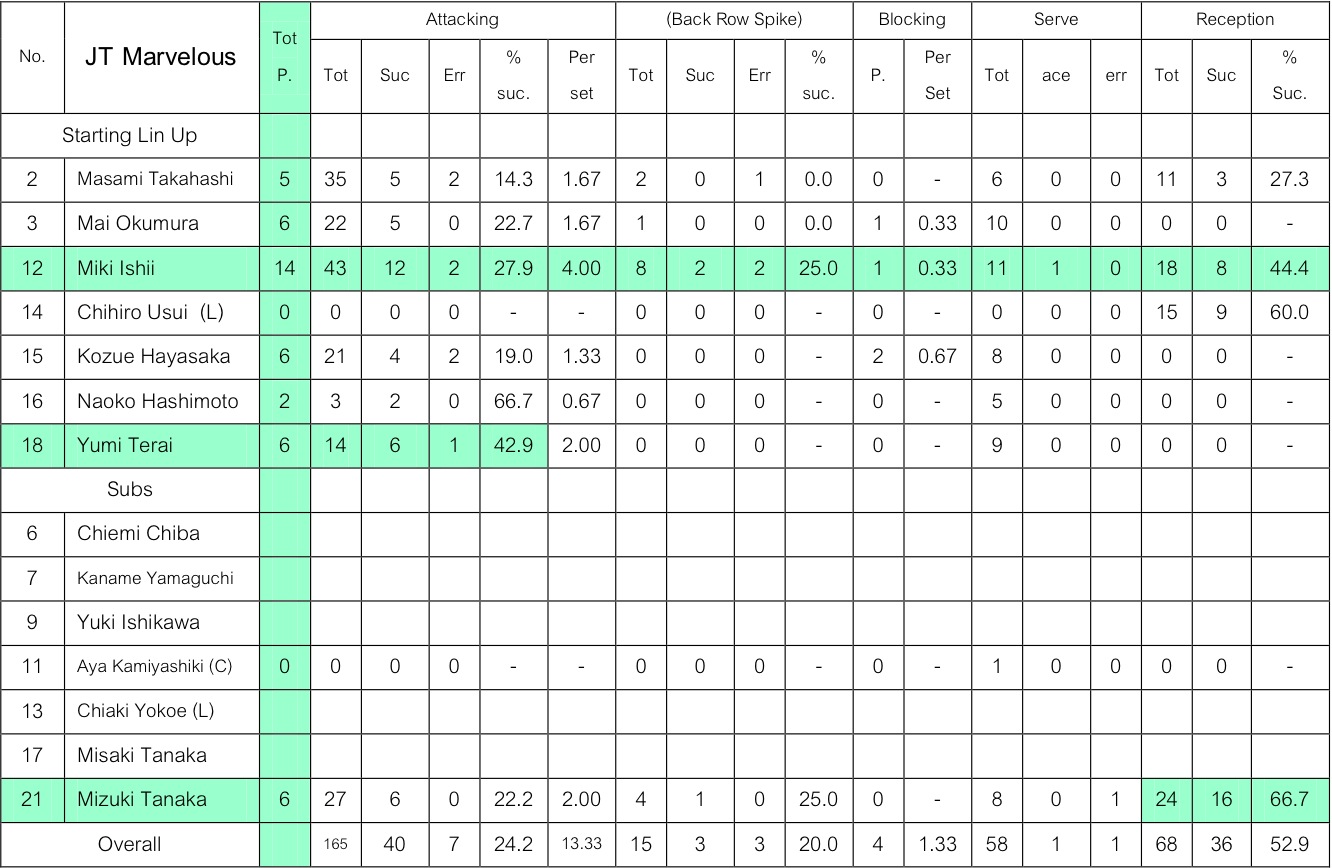 สถิติ "อรอุมา" V.Challenge League #3: JT Marvelous vs Hiroshima Oilers