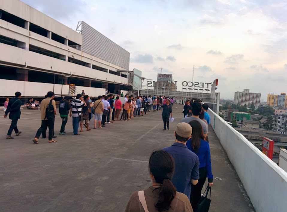 ก็ต่อแถว จนกระทั่ง 8 โมงเกือบๆ ครึ่ง แถวก็เริ่มขยับทีละเล็กละน้อยไปเรื่อยๆ ครับ ใช้เวลาอยู่นานเหมือนกัน ประมาณ 10 โมง ถึงได้คิวจริงมา เป็นลำดับที่ 670 ครับ แอบเห็นหลายคนต้องกลับบ้านไป เพราะว่าไม่สามารถทำได้ เอกสารไม่ครบ ตอนนั้นเรียกคิวอยู่ที่ราวๆ 300 กว่าๆ ครับ เลยคิดว่าลงไปหาอะไรกินก่อน แล้วเดี๋ยวกลับขึ้นมาประมาณเที่ยง