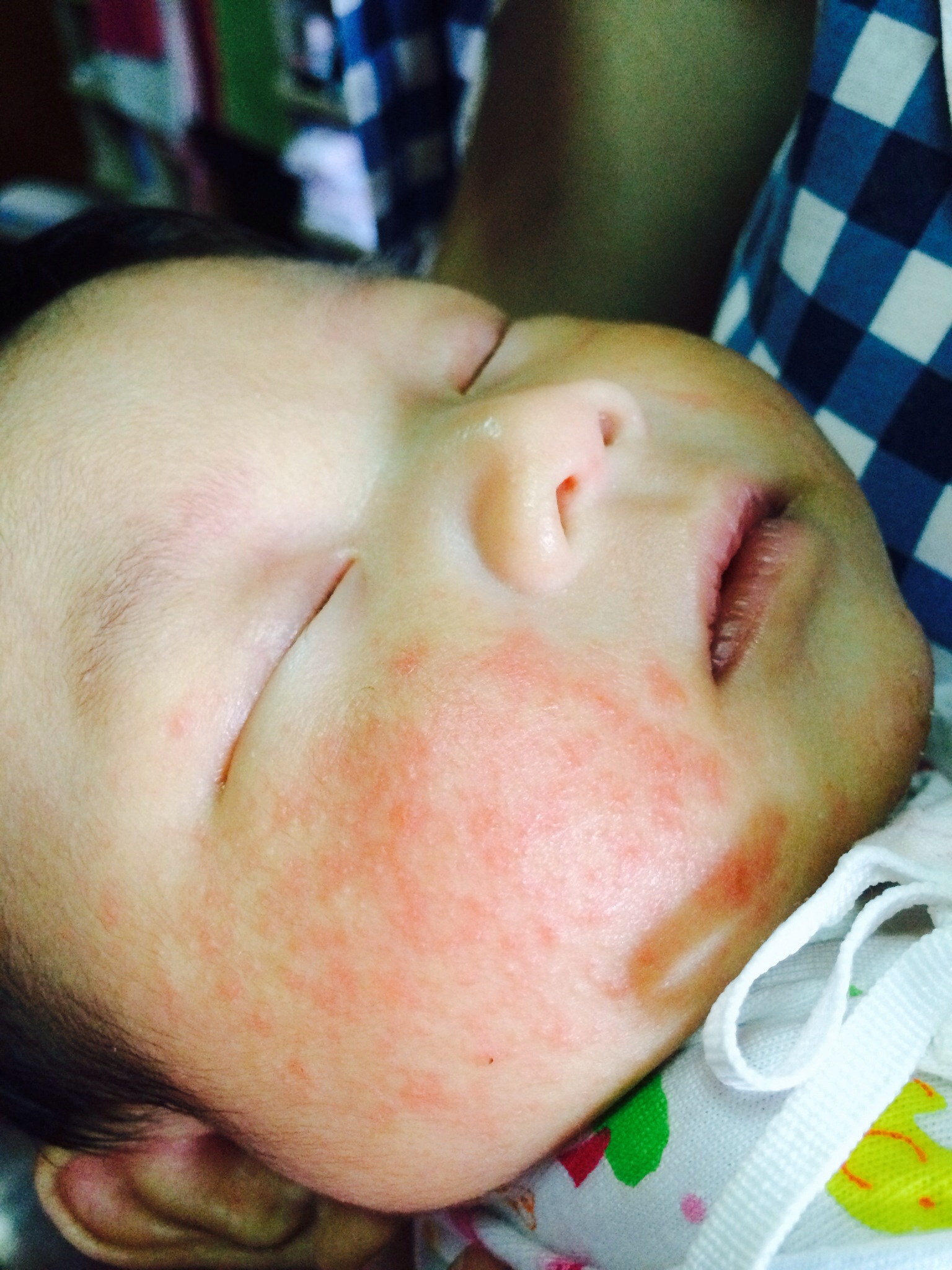 ลูกสาวอายุ2เดือน มีผิวสากๆแล้วก็ผื่นแดงที่หน้าค่ะ เป็นๆหายๆ แล้วช่วงนี้ที่คอน้องก็แดงด้วยบางวันมีกลิ่นเลยค่ะ ทั้งๆที่คอยซับให้แห้ง ทาบีเพนเทนแล้วก็ไม่ดีขึ้น วาสลีนก็แล้วไม่หาย น้องกินนมแม่ล้วนค่ะ งดto