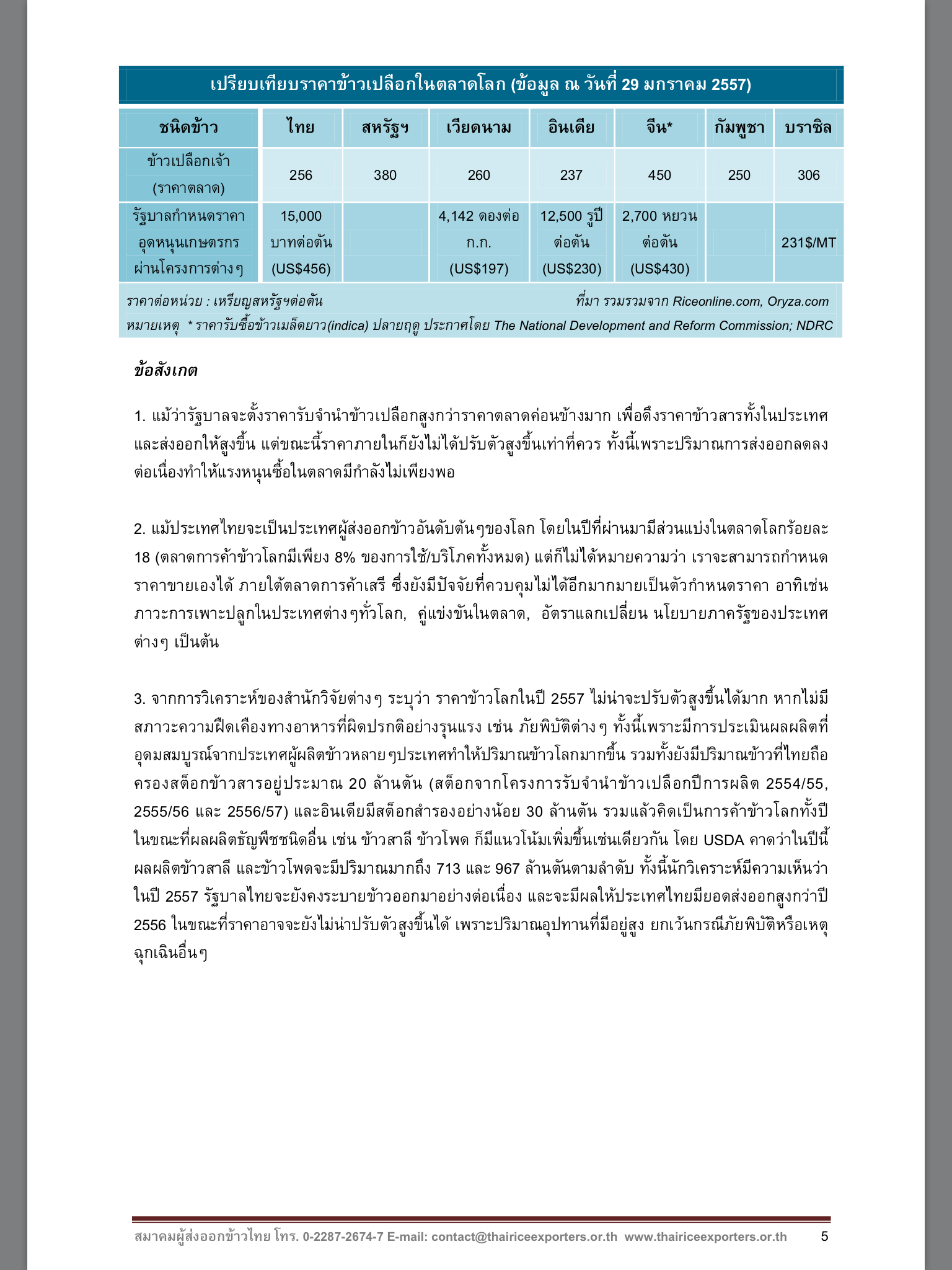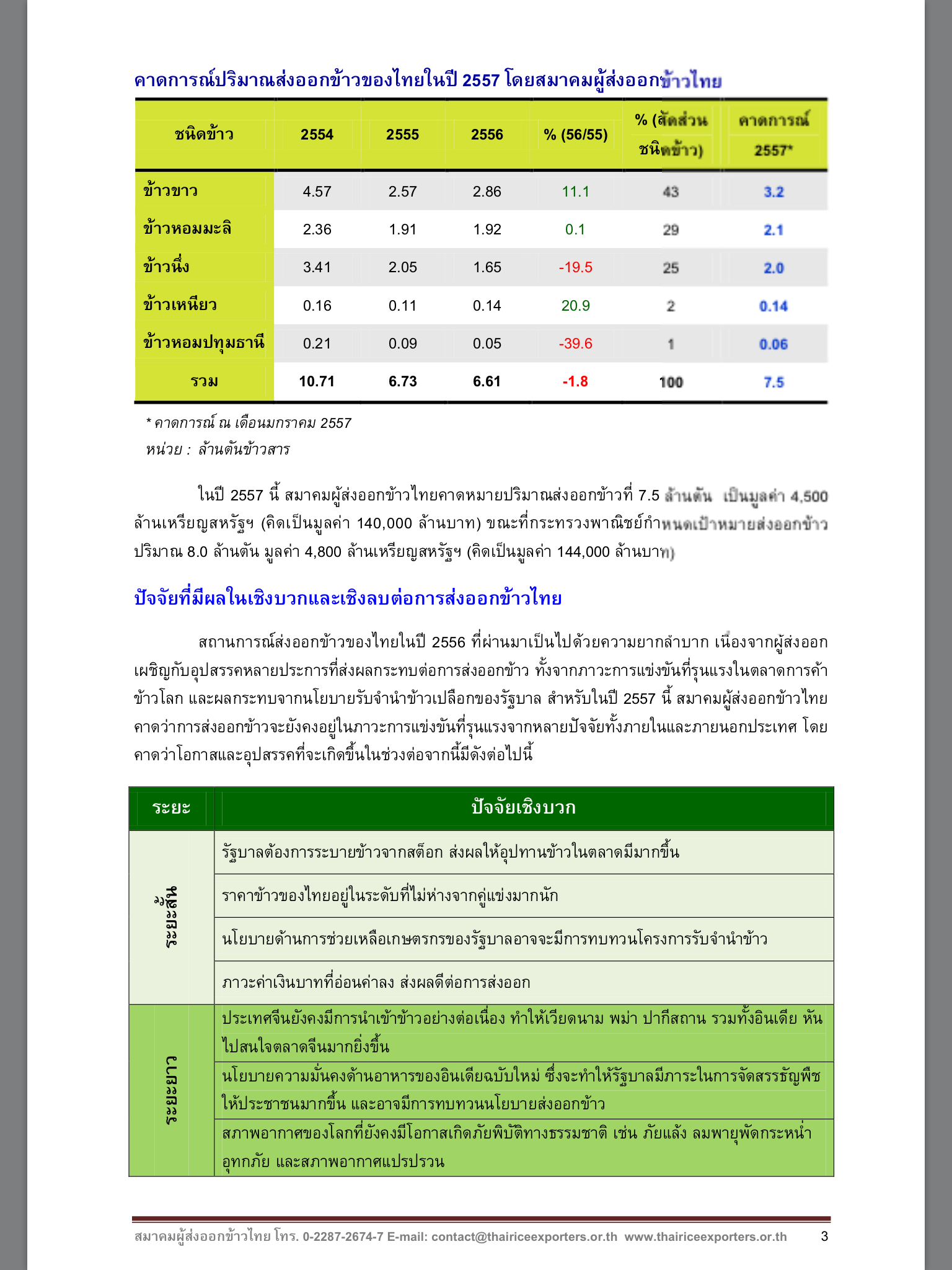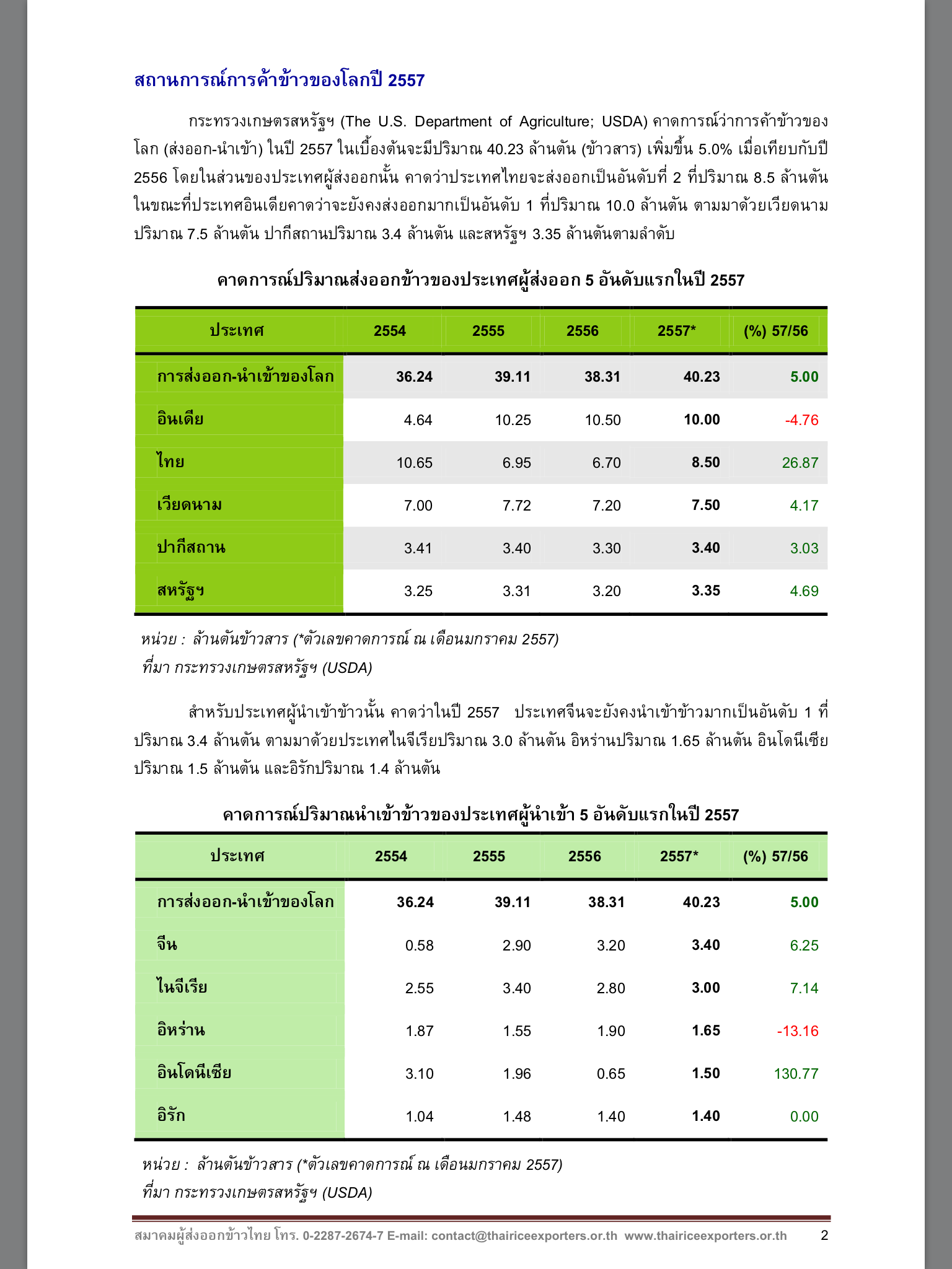 แนวโน้มและทิศทางการส่งออกข้าวไทย ปี 2557