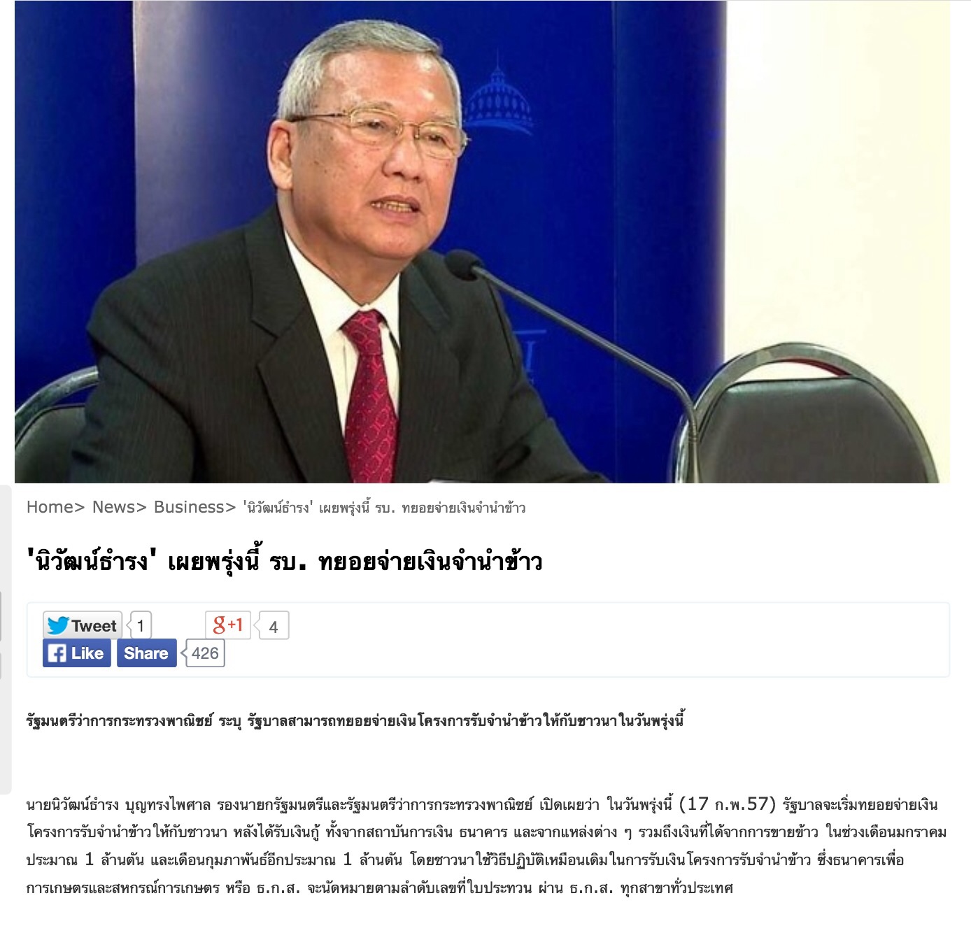 ข่าวดีของชาวนา >>>>> จะได้มีกำลังใจปลูกข้าวให้เรากิน