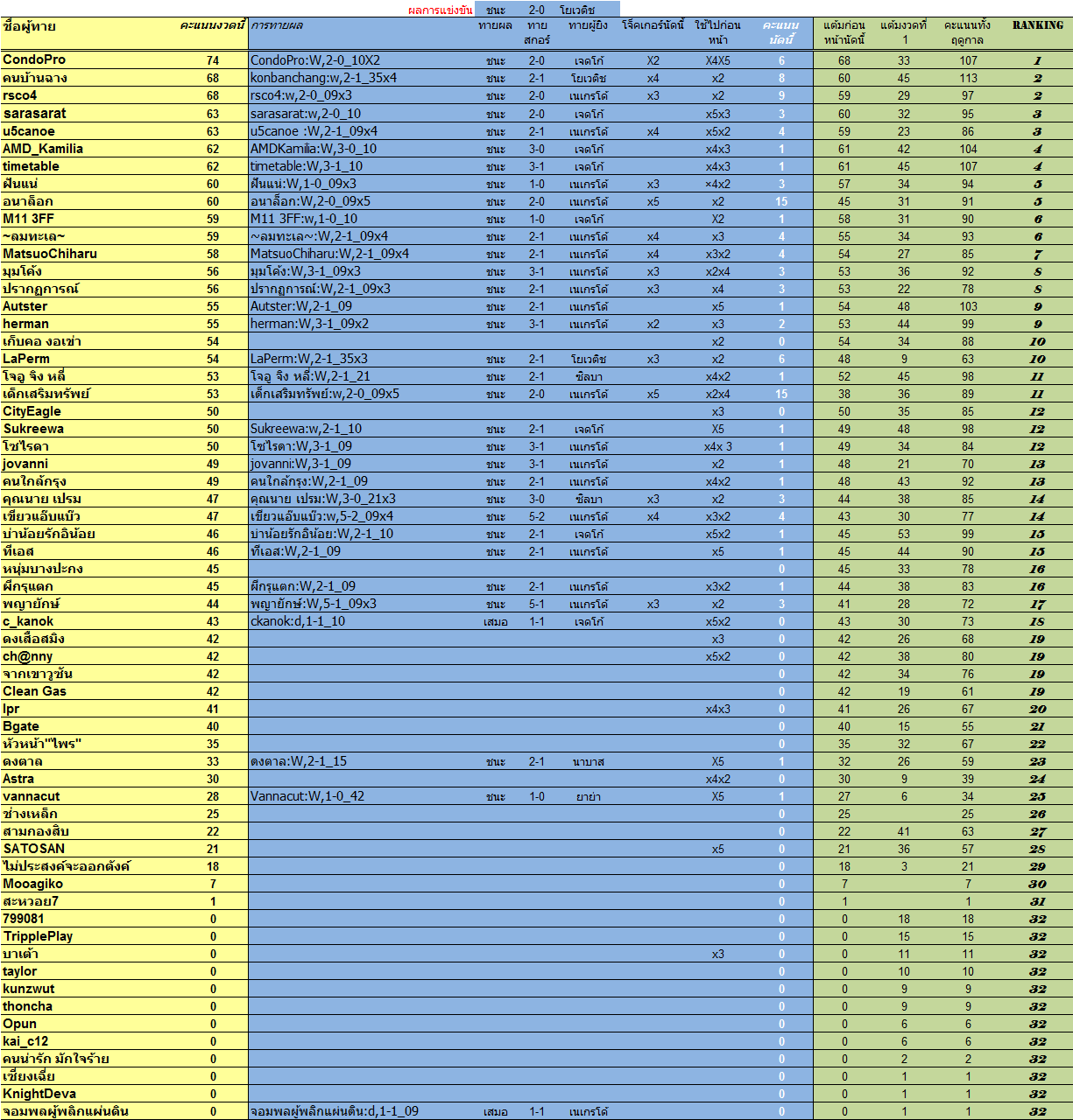 คะแนนทายผลนัดล่าสุด