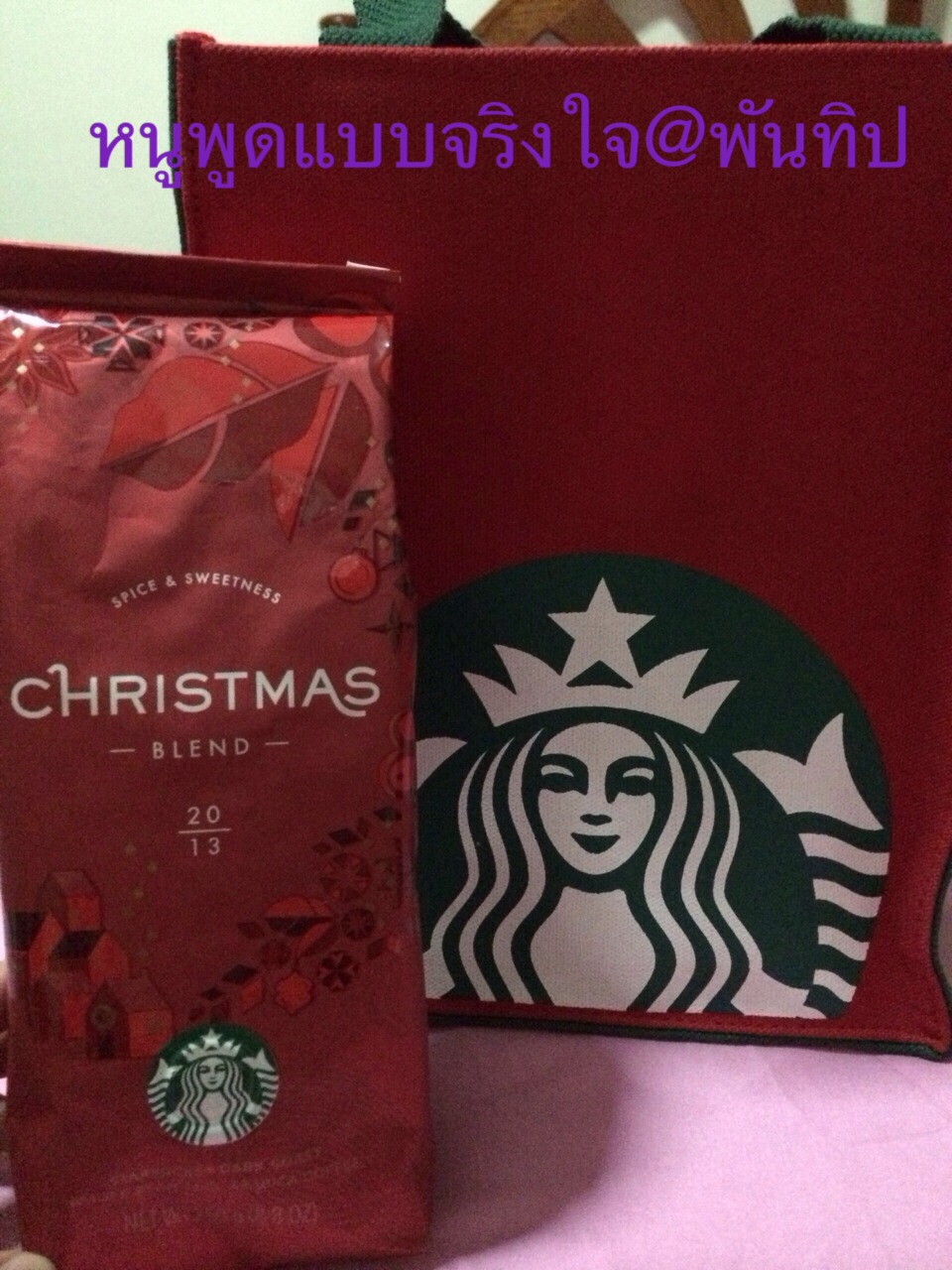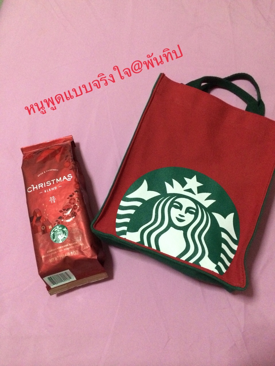 แถม ฟรีไปเลย ถุงผ้าสตาร์บัคใบน่ารักสีแดง