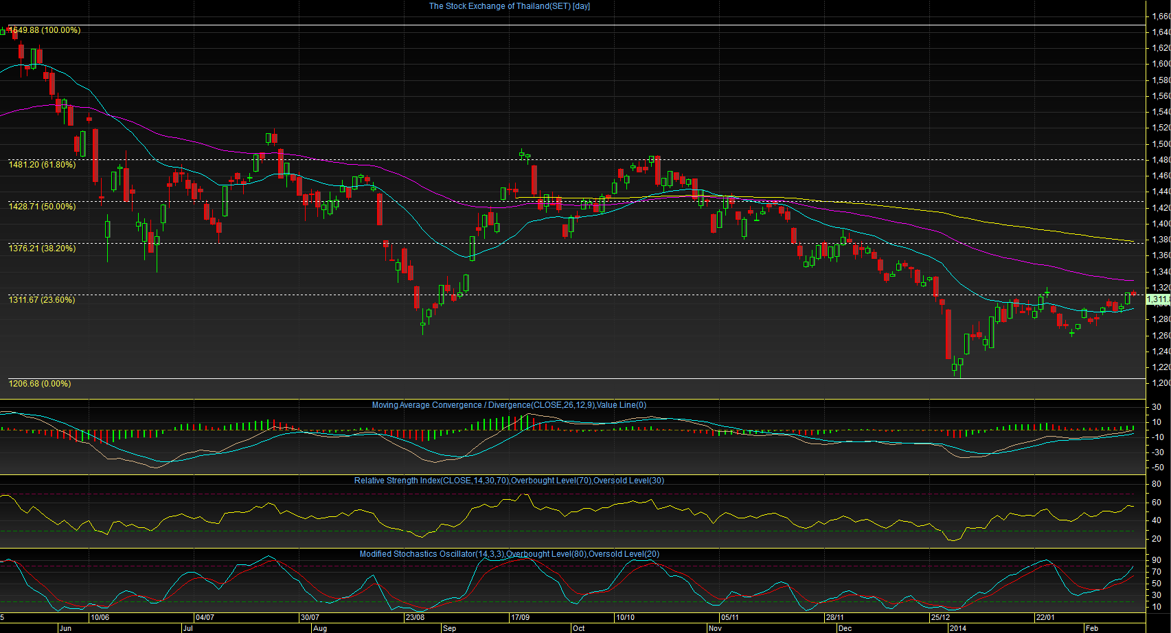SET index TF Day : เมื่อวานพฤหัสบดี ที่ผ่านมา แกว่งตัวในกรอบแคบๆ (1308-1317) และลงมาปิดคาบเส้น Fibo 23.6%