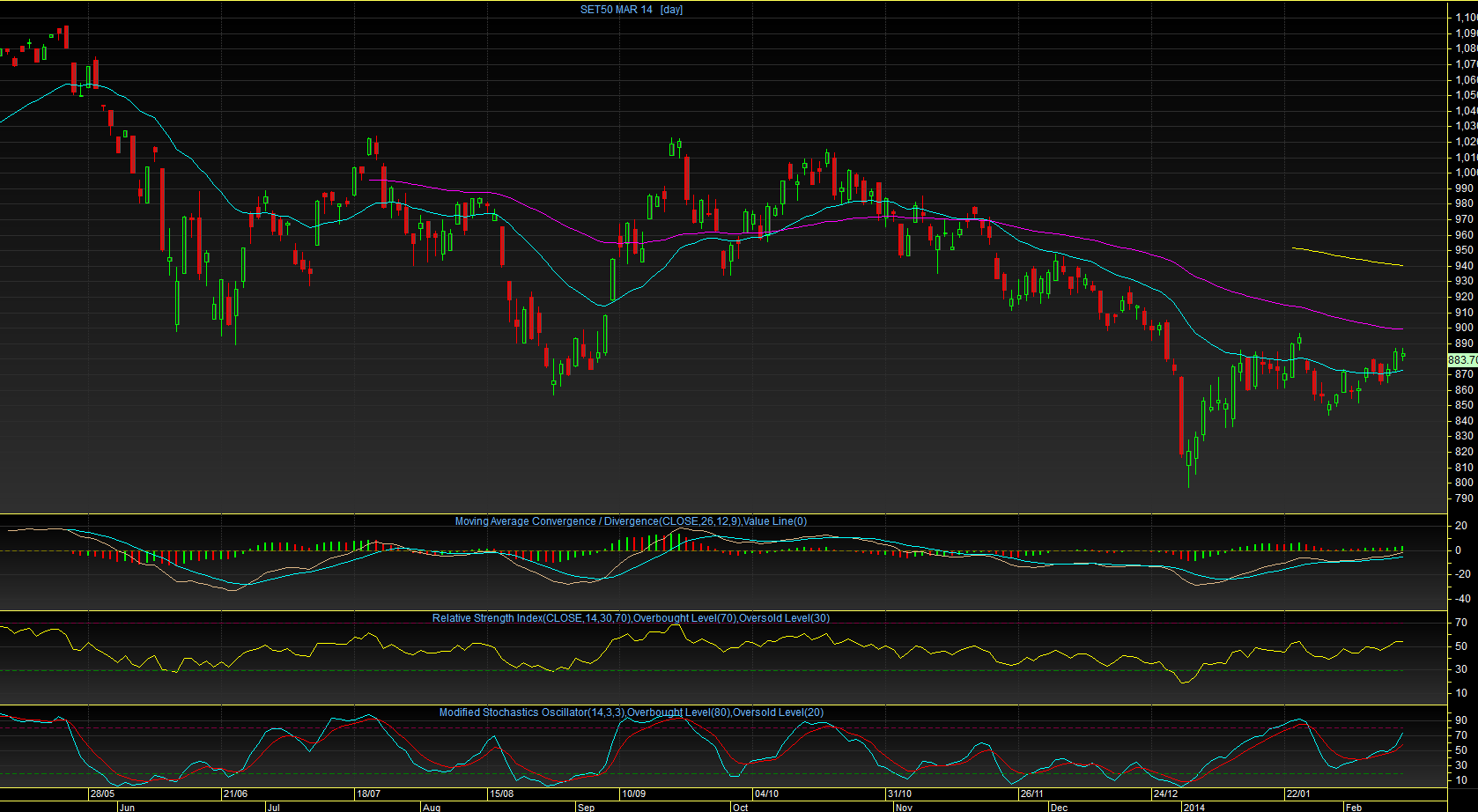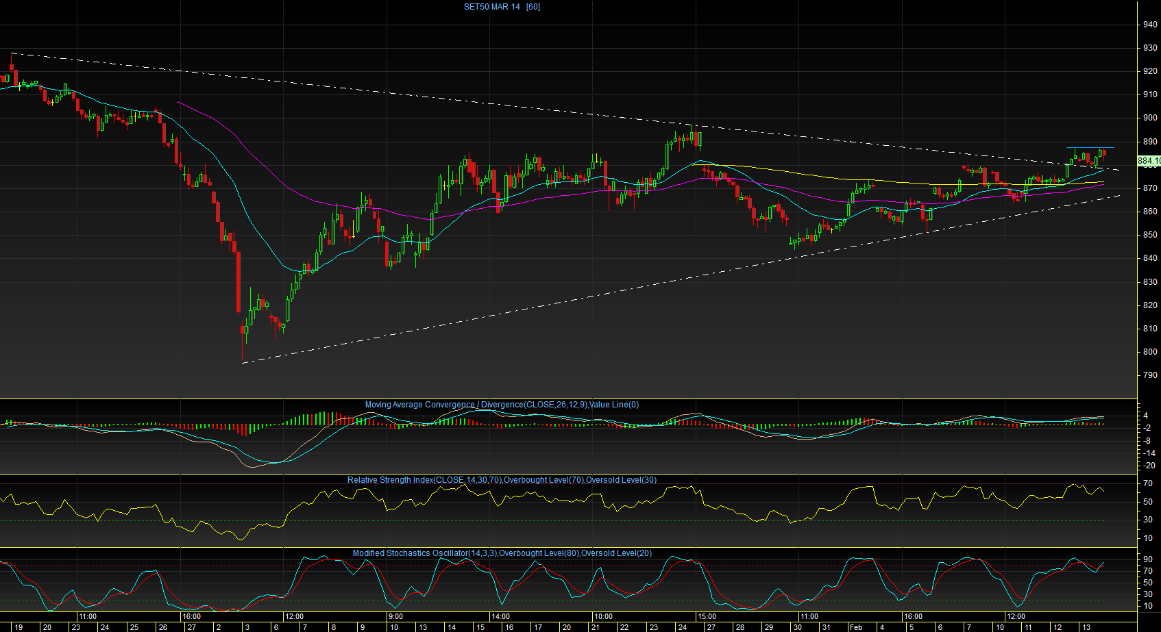 S50H14 TF Day : เมื่อวานพฤหัสบดี ที่ผ่านมา แกว่งตัวในกรอบแคบๆ (886.90-878) และ ปิดแท่งเทียนในรูปฟอร์ม