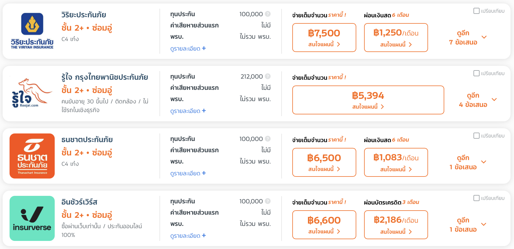 อย่างประกันชั้น 2+ ราคา 5,394 บาทเอง เอามาจากเว็บเปรียบเทียบประกัน