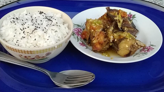 แบบว่าที่บ้านเค้าทำนานะค่ะ เอาข้าวหอมมะลิใหม่มาฝากให้หุงทาน เลยหุงข้าว แล้วทอดปลาช่อนราดพริก อย่างที่เห็นในรูปหล่ะค่ะ มาเด้อ ปลาราดพริกรสชาติแซ่บอิหลี