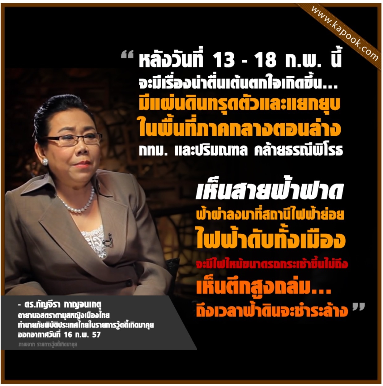 >>> ดร.กัญจีรา สมกับฉายานอสตาดามุสหญิงเมืองไทย หรือเพียงแค่ราคาคุย 13-18 กพ.นี้รู้กัน <<<
