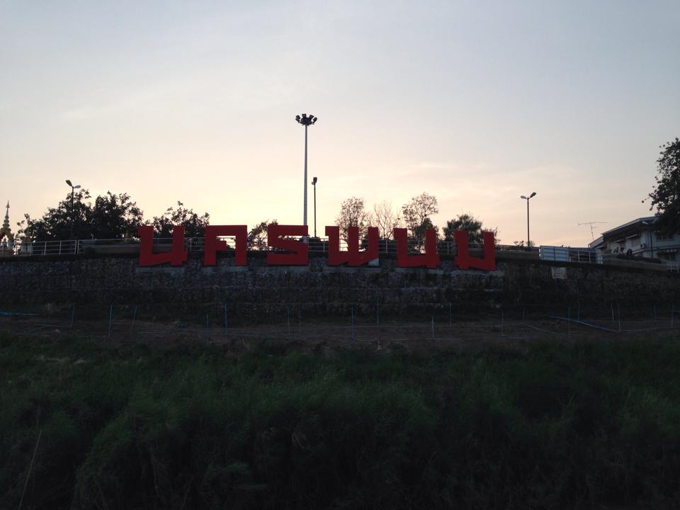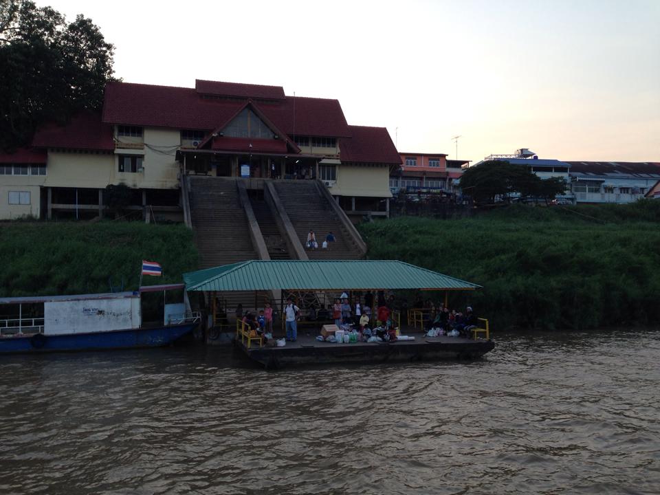 หลังจากลงเครื่องก็รีบนั่งรถตู้ รีบไปริมโขงทันที แต่กว่าจะไป ต้องวนไปส่ง ผดส. ตามหมู่บ้านจัดสรร/มหาวิทยาลัย โรงแรม อีกพอสมควร ผมจองเรือไว้แล้ว ก็ขอให้ทันเวลาเรือล่องลำโขง รอบ 17.00 น. ราคาเที่ยวละ 50 บาท ...ระหว่างนั่งในรถตู้ผมก็โทรศัพท์หากัปตันเรือเป็นระยะ บอกว่าผมกำลังไป..