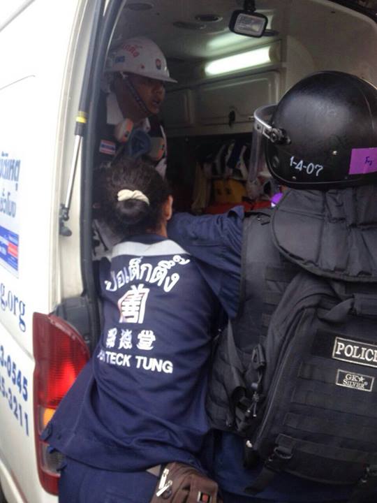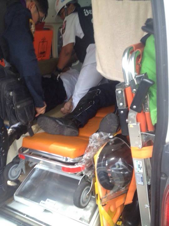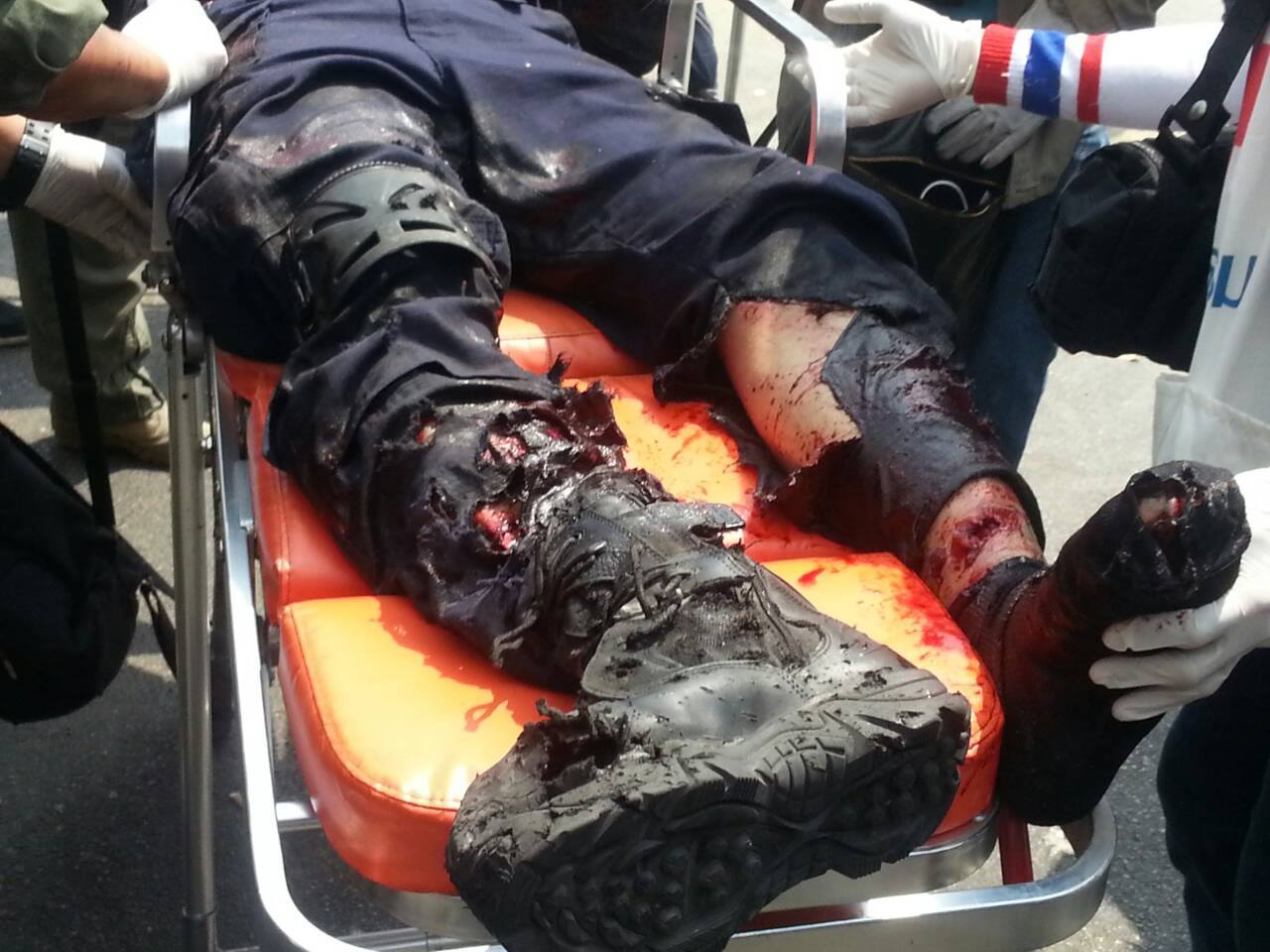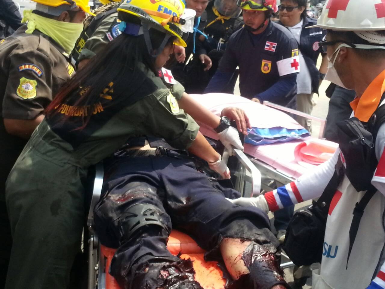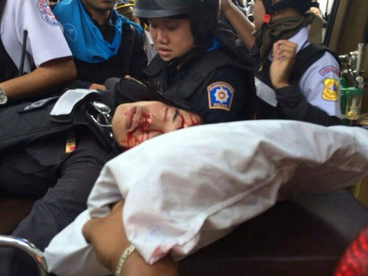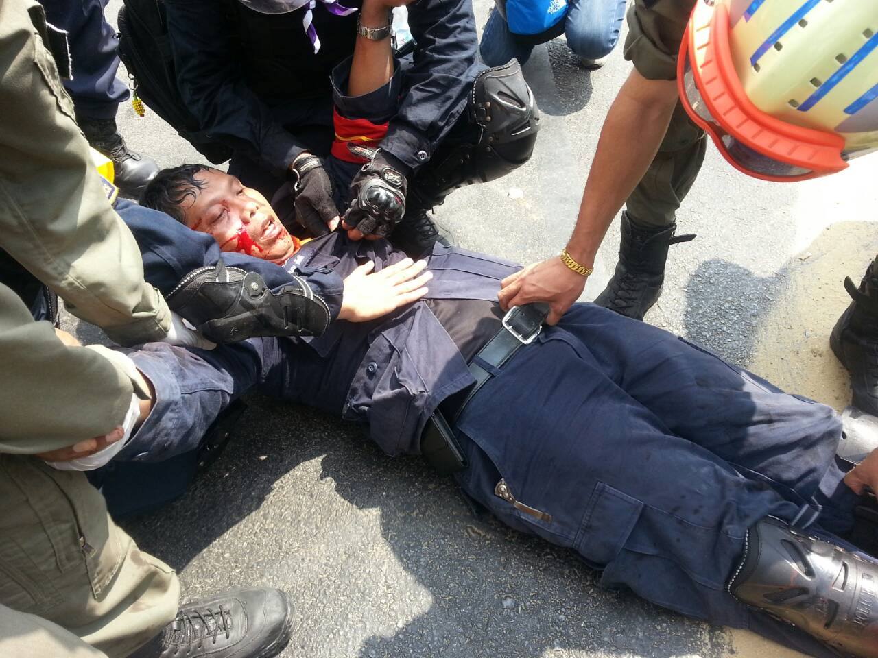 ภาพของเจ้าหน้าที่ตำรวจที่ได้รับบาดเจ็บบริเวณสะพานผ่านฟ้า