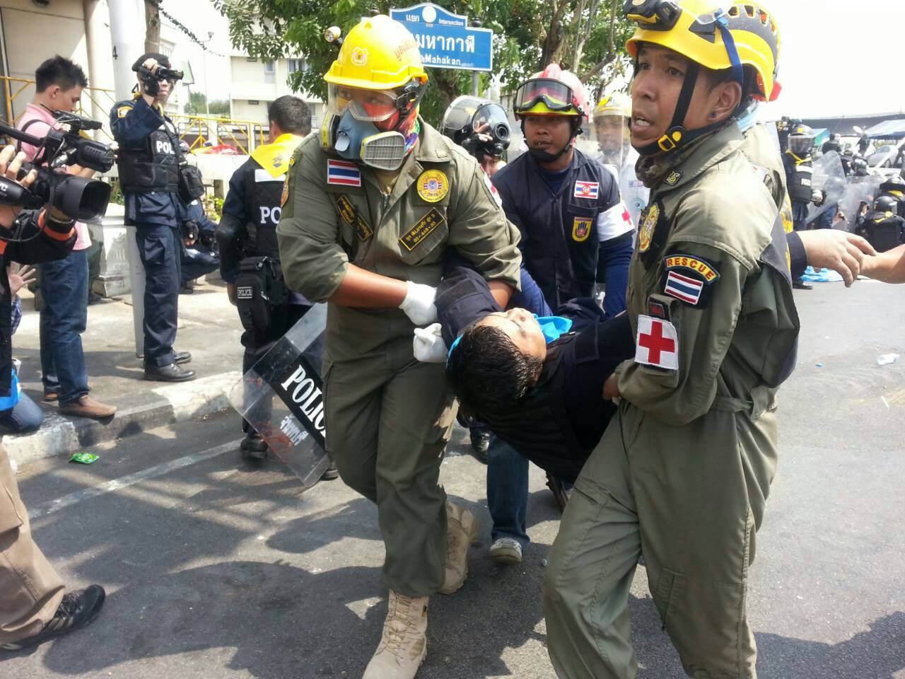 เจ้าหน้าที่ตำรวจได้รับบาดเจ็บจากกระสุนจริง ขณะเข้าข้อคืนพื้นที่บริเวณสะพานผ่านฟ้า