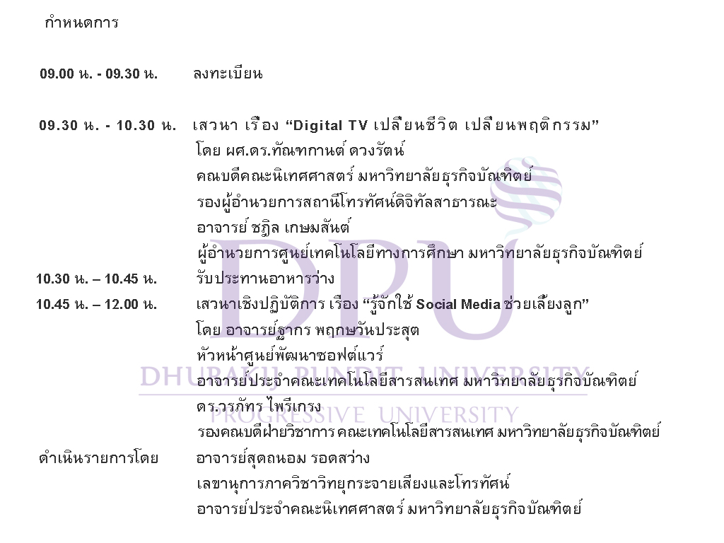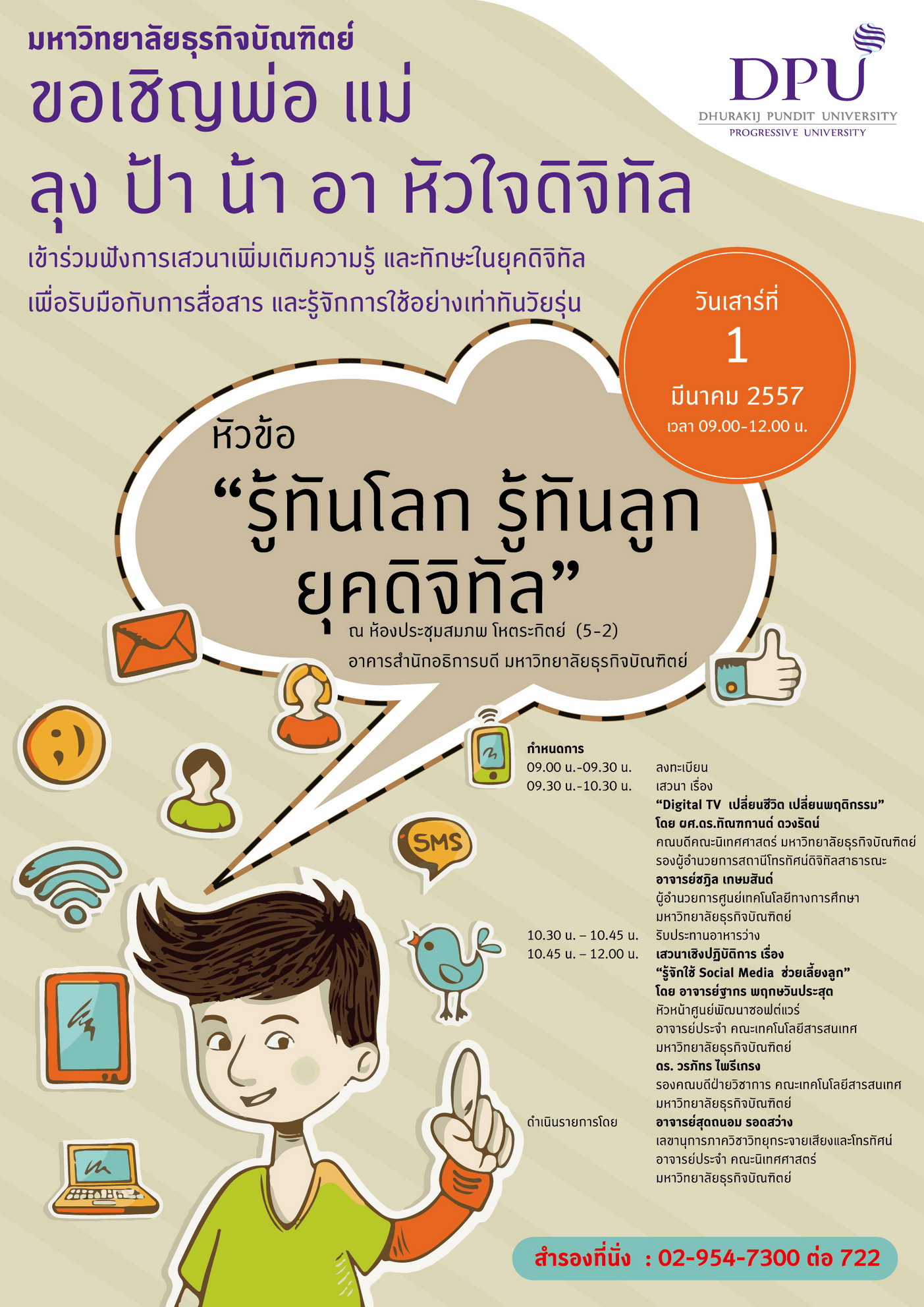 ม.ธุรกิจบัณฑิตย์ ขอเชิญผู้ปกครองร่วมเสวนาหัวข้อ "รู้ทันโลก รู้ทันลูก ยุคดิจิทัล" 1 มีค.นี้