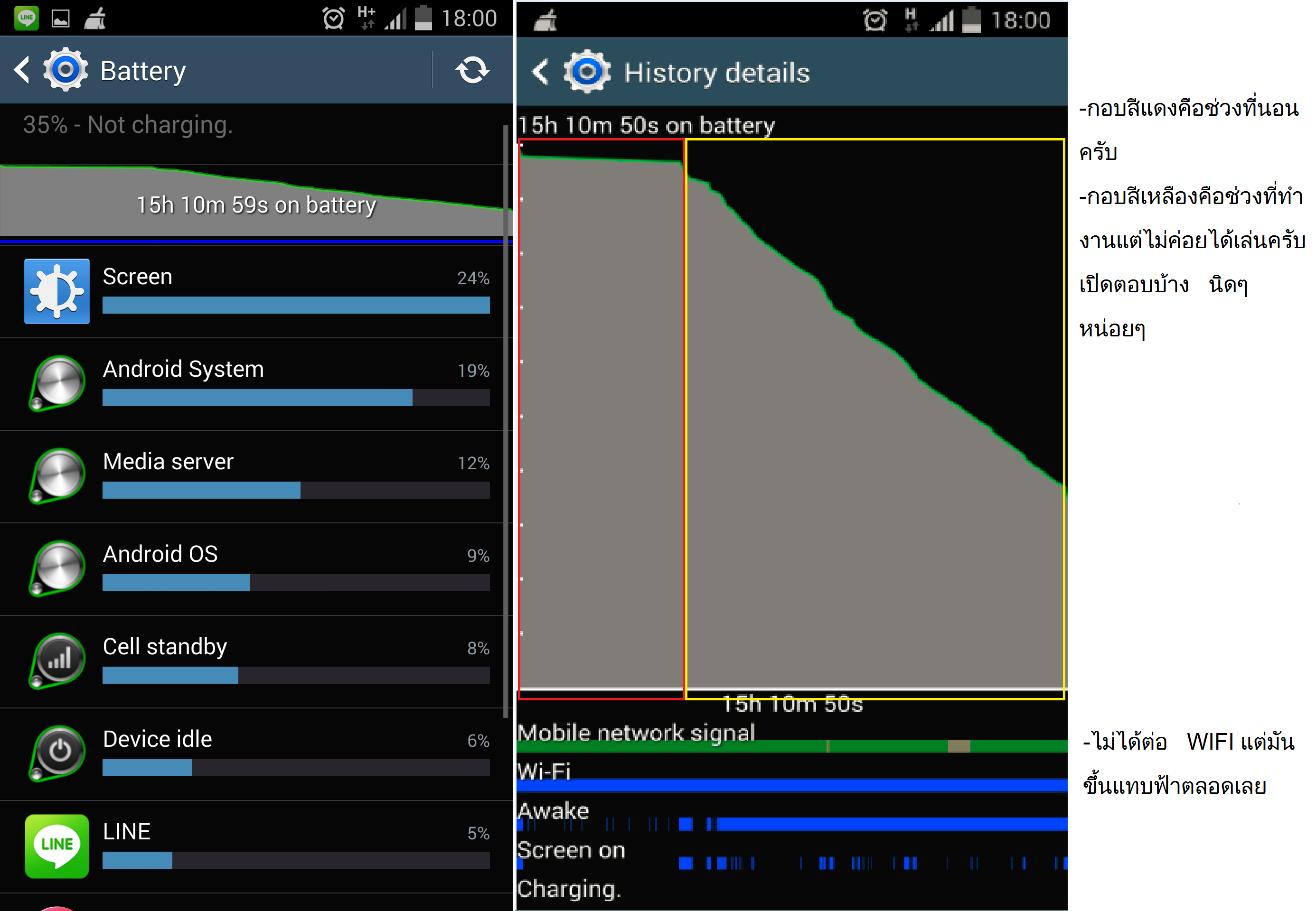 3. จากที่ลองสังเกต ตอนนอนแล้วตื่นมา ไม่ได้เปิด WIFI และ ปิดรับข้อมูล ตื่นมาแบตลดไป เกิบ 10%