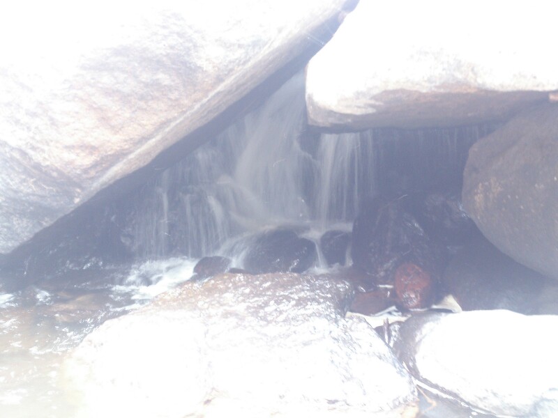 มาถึงแล้วก่อนอื่นเลยเดินไปดูนำ้ นำ้ก็น้อยมากครับ มีเป็นบางช่วง (ถึงว่าคนไม่มี) ก็ถ่ายรูปเก็บไว้นิดหน่อย เสร็จแล้วก็เดินขึ้นไปจุดชมวิว ที่เป็นสะพานไม้ เนื่องจากนำ้น้อยมากผมเลยลงไปเดินที่ข้างล่างสะพานบนโขดหินได้สบายๆ และก็เก็บรูปไปเรื่อยๆ จนเดินลอดใต้สะพานนั้นมาและก็ได้ถ่ายรูปนี้เป็นรูปสุดท้ายครับ ตอนถ่ายเสร็จผมไม่เห็นรายละเอียดมากนัก แต่กลับมาถึงบ้านแล้วเปิดดู ขนลุกเลยครับ เห็นเหมือนผมหรือเปล่าครับ หรือว่าผมคิดมากไปเอง...