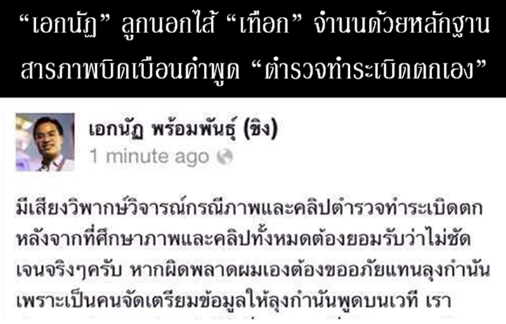 "เอกนัฏ"แก้ข่าวเฉพาะในเฟสหรอครับ ทำไมไม่แก้ข่าวขอโทษผ่านทางทีวี ตำรวจเขาเสียหายไปแล้ว