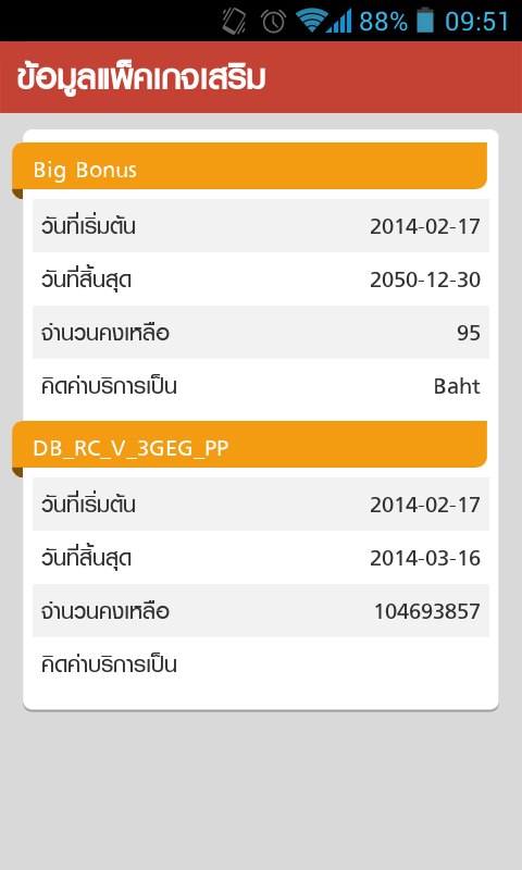 ผมไปเช็คที่ iservice มา แล้วทำไมมันเป็นแบบนี้อ่ะคับ 3G/EDGE/GPRS/WiFi โปรโมชั่น 3G/EDGE/GPRS วันที่เริ่มต้น 02/03/2013 18:20:56 วันที่สิ้นสุด 18/03/2013 23:59:59 จำนวนการใช้งานที่ได้รับ ไม่จำกัด จ