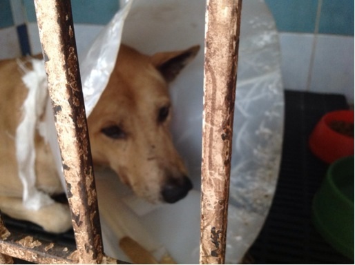 ตอนนี้มึน อยู่โรงพยาบาลสัตว์มัยลาภ มาได้เกือบเดือนแล้ว มี ชีวิตส่วนใหญ่อยู่แต่ในกรง และต้องทำแผลวัน เว้น วัน. และทุกวันสลับกันไปตามสภาพแผล เนื่องจากแผลมี