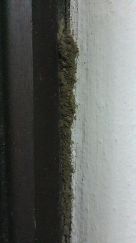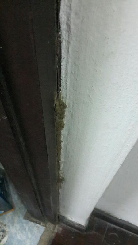 ผมเห็นมันมีผง ๆ ปูดออกมาจากซอกวงกบประตู ผมมองเข้าไปก็ไม่เห็นมีตัวอะไร (หรือว่าผมมองไม่เห็นเอง) เป็นรังปลวกหรือเปล่าครับ หรือว่ารังมด หรือว่าเป็นรังของตัวอะไร