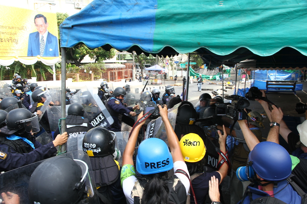 .... ให้นึกถึงสถานที่เกิดเหตุก่อนนะครับ ว่ามีเต้นท์ของผู้ชุมนุมอยู่ฝั่งตรงกันข้ามกับตำรวจควบคุมฝูงชน .....