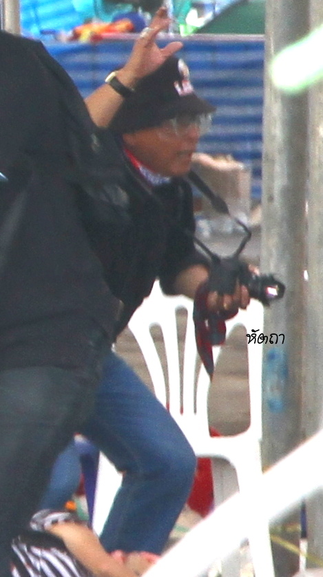 ปรากฏภาพของคนร้ายนั่งหมอบอยู่ท่ามกลางควันไฟในเต้นท์ที่มีควันนั้น ในขณะที่มีผู้ตะโกนว่า "ตำรวจถูกยิง" ซึ่งอยู่ห่างจากผู้ถ่ายภาพประมาณ 3-5เมตร ผู้ถ่ายจึงวิ่งออกไปเก็บภาพถ่าย ไม่ถึง 3 นาทีก็ได้ยินเสียงระเบิด