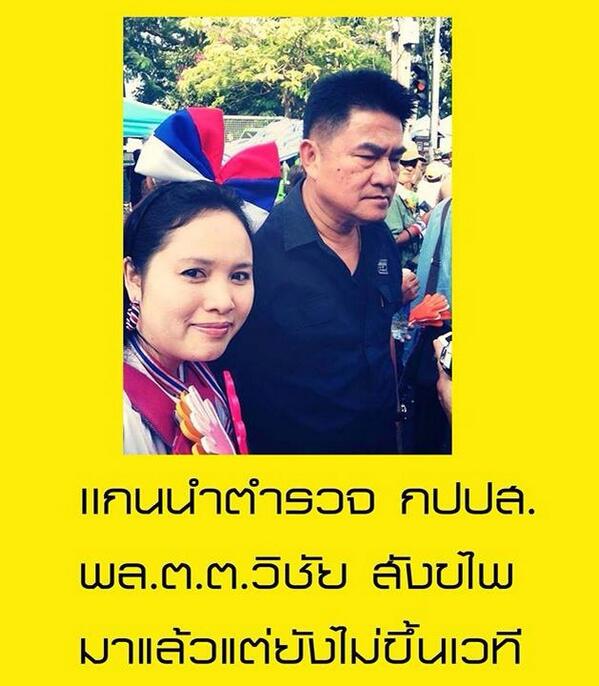 พล.ต.ต. วิชัย สังข์ประไพ อดีตรองผู้บัญชาการตำรวจนครบาล เพิ่งโทรมาบอกผมว่าอดีตนายตำรวจจำนวนมากและพี่น้องตำรวจที่ยังทำหน้าที่อยู่ ได้รวมตัวกันจัดตั้ง กปปส ตำรวจแล้ว เพื่อประสานงานกับพี่น้องตำรวจทั่วประเทศให้กลับมามีความรัก เอื้ออาทรกับพี่น้องประชาชนเหมือนแต่ก่อน และทำให้พี่น้องประชาชนเลิกเกลียดตำรวจ บอกว่าถ้าตำรวจเกลียดประชาชน และประชาชนเกลียดตำรวจ บ้านเมืองเราไม่มีทางเป็นสุข ทุกคนไม่สามารถทนเห็นศักดิ์ศรีเกียรติตำรวจถูกนายตำรวจทรยศชาติบางคนเอาตำรวจไปขายแก่ระบอบทักษิณเพื่อหาประโยชน์ส่วนตัว และขณะนี้ กำลังประสานเวทีเพื่อแสดงตัว และขอร้องพี่น้องประชาชนให้โอกาส กปปส ตำรวจด้วย และขอเชิญพี่น้องตำรวจทั่วประเทศติดต่อตนได้โดยตรง หรือจะติดต่อผ่านผู้ที่เคยร่วมงานกับตนก็ได้