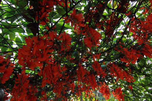 เพราะชอบสีและดอกช่อม่วงพวงคราม รู้ว่าเป็นไม้ต่างถิ่น จากหมู่เกาะเวสต์อินดีส เม็กซิโก ปานามา เป็นไม้เถา เนื้อแข็ง ใบสากเหมือนกระดาษทราย ไม่รู้มาก่อนว่า โตเร็วมาก และเนื่องจากมีไม้ท้องถิ่นคือมะเฟืองหวาน