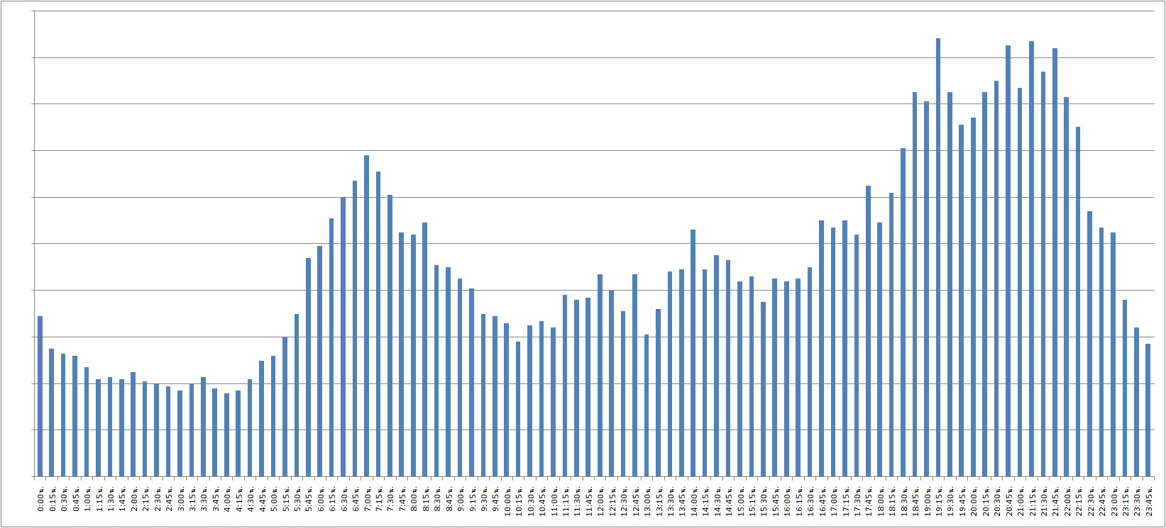 กราฟความหนาแน่น ของผู้ชมรายการทีวีในแต่ละช่วงเวลาว่าช่วงไหนมีคนดูมาก ช่วงไหนมีคนดูน้อย